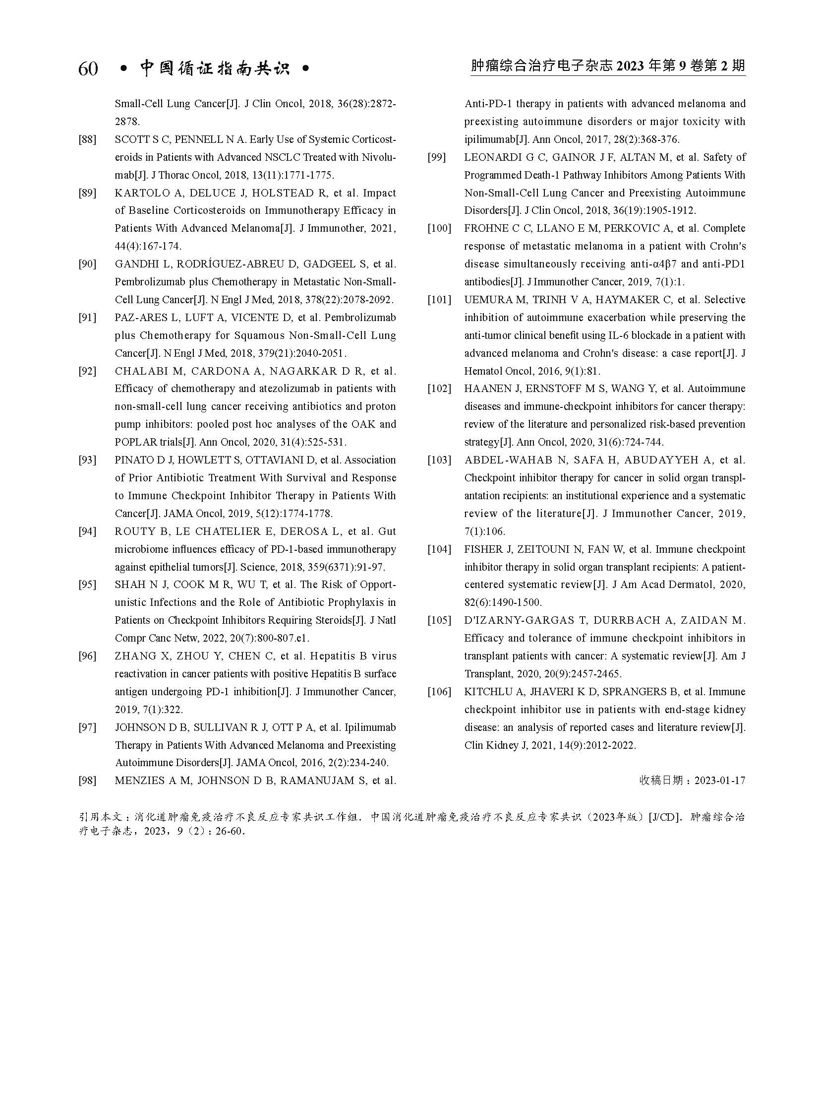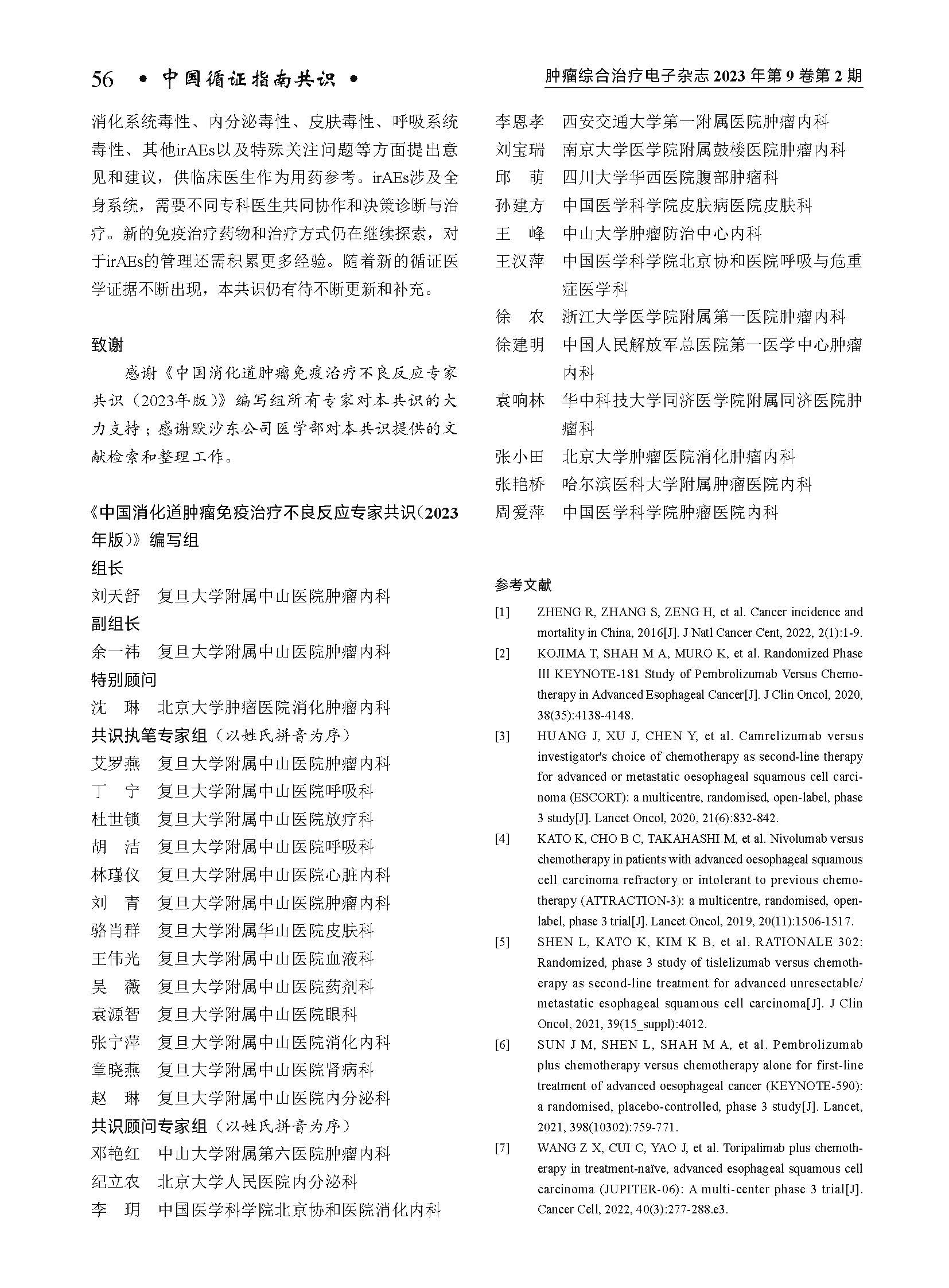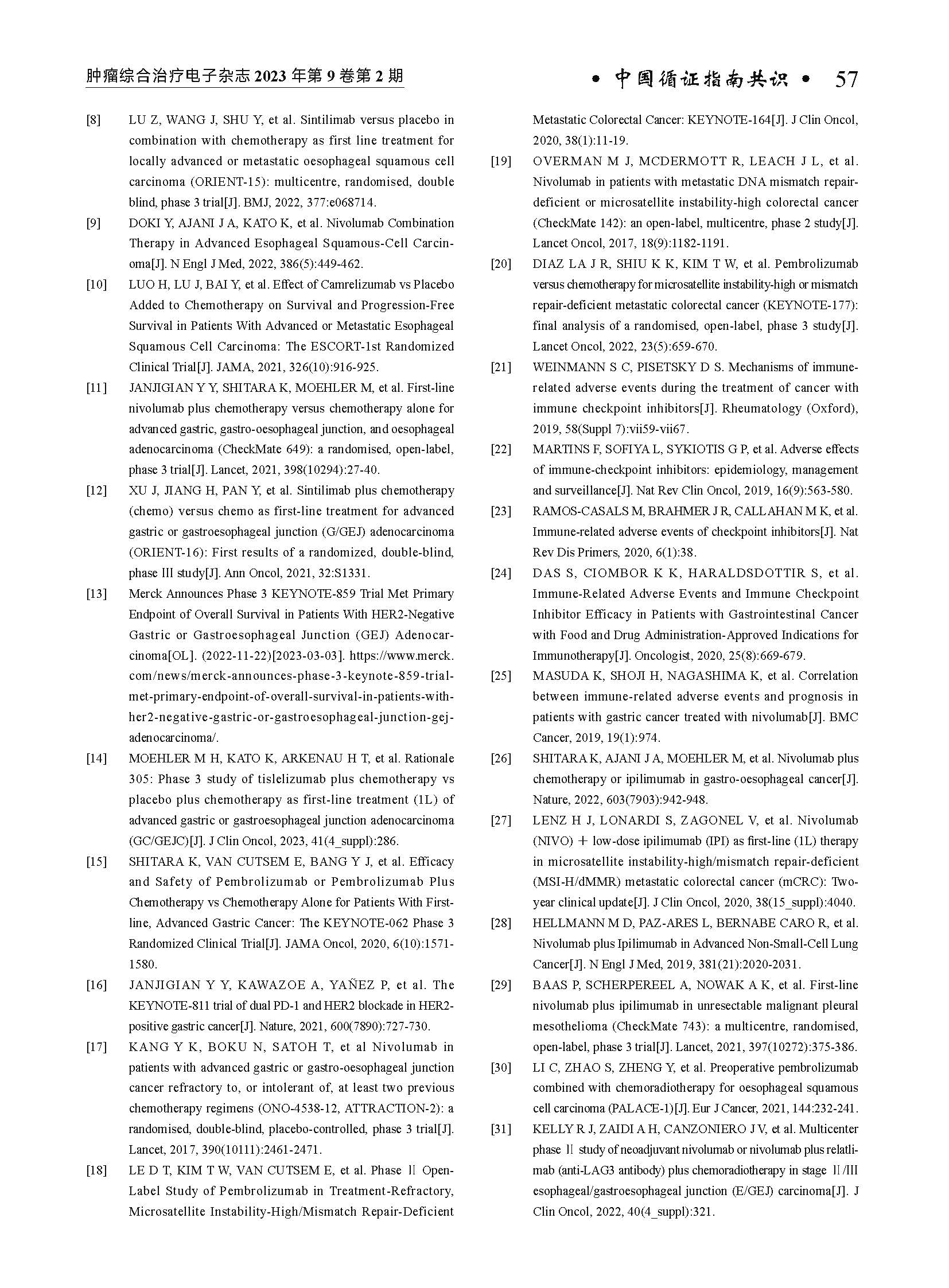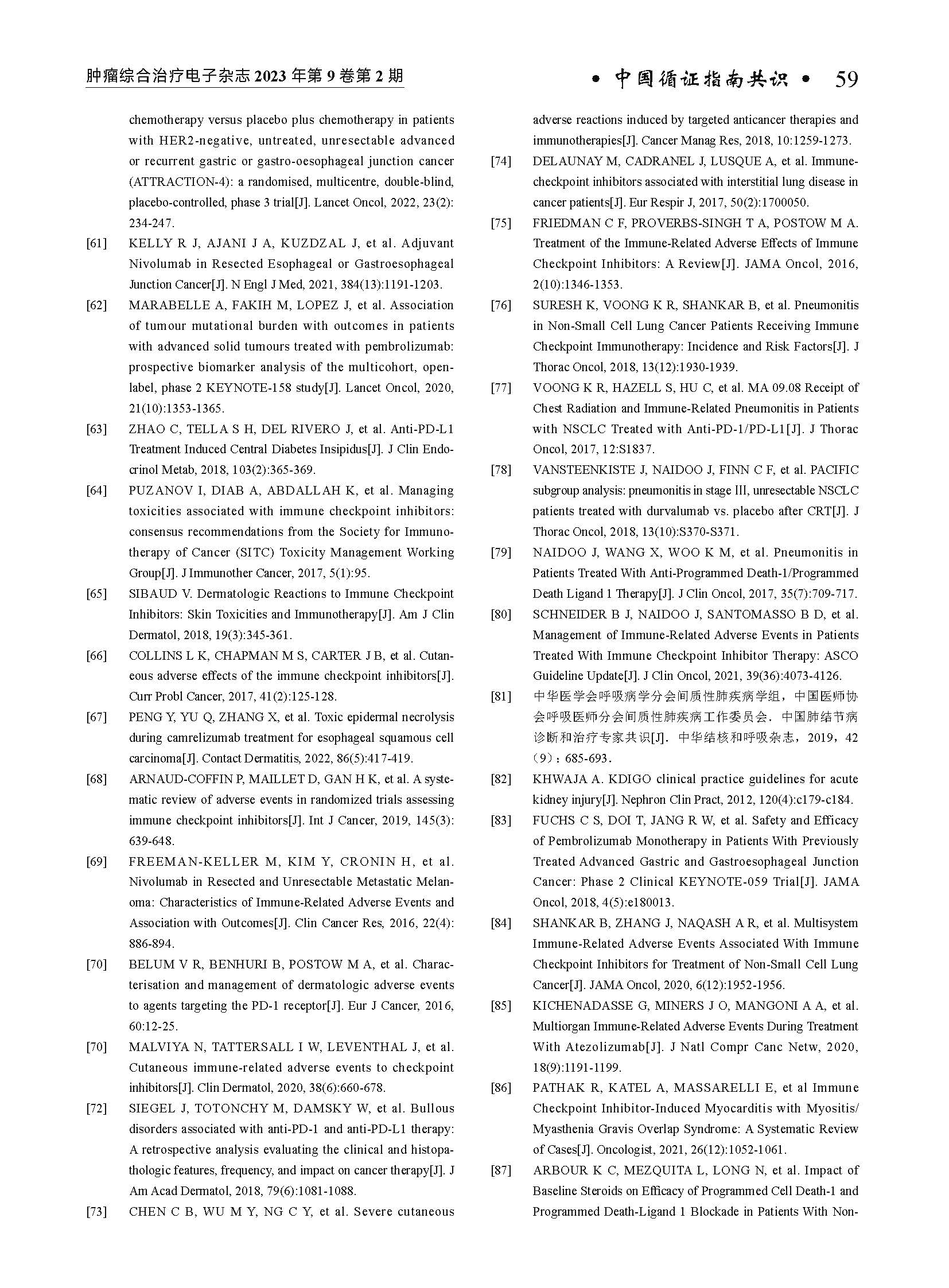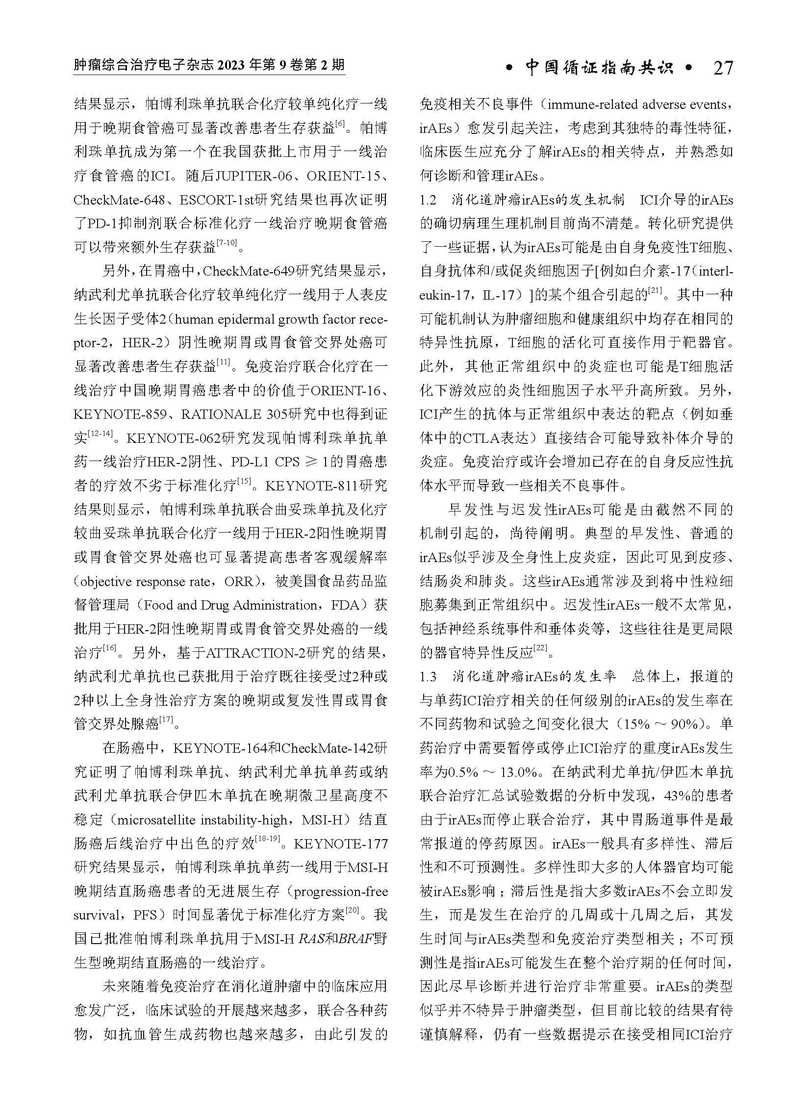 《中国消化道肿瘤免疫治疗不良反应专家共识(2023年版)》编写组. 中国消化道肿瘤免疫治疗不良反应专家共识(2023年版)[J]. 肿瘤综合治疗电子杂志, 2023, 9(2): 26-60