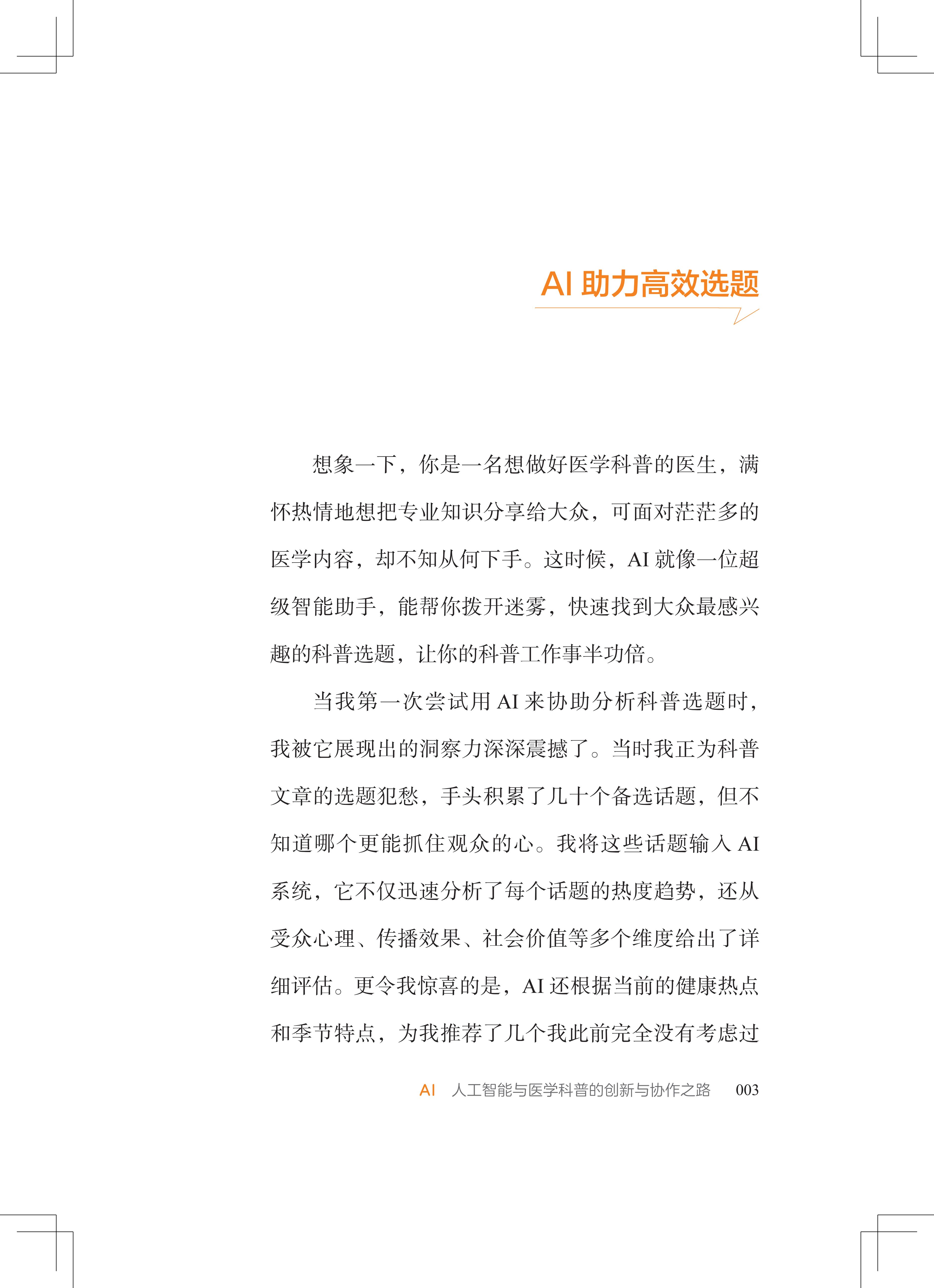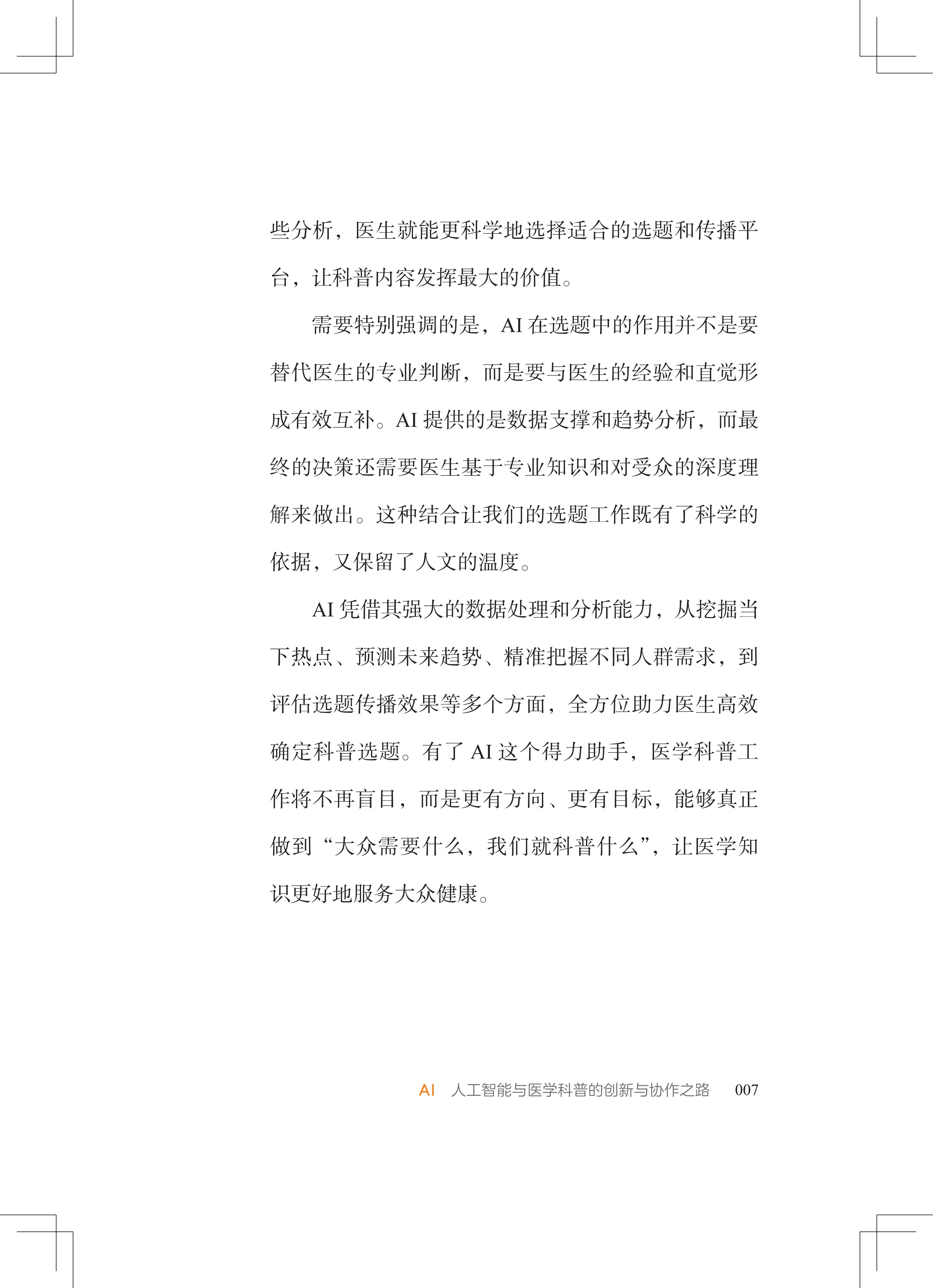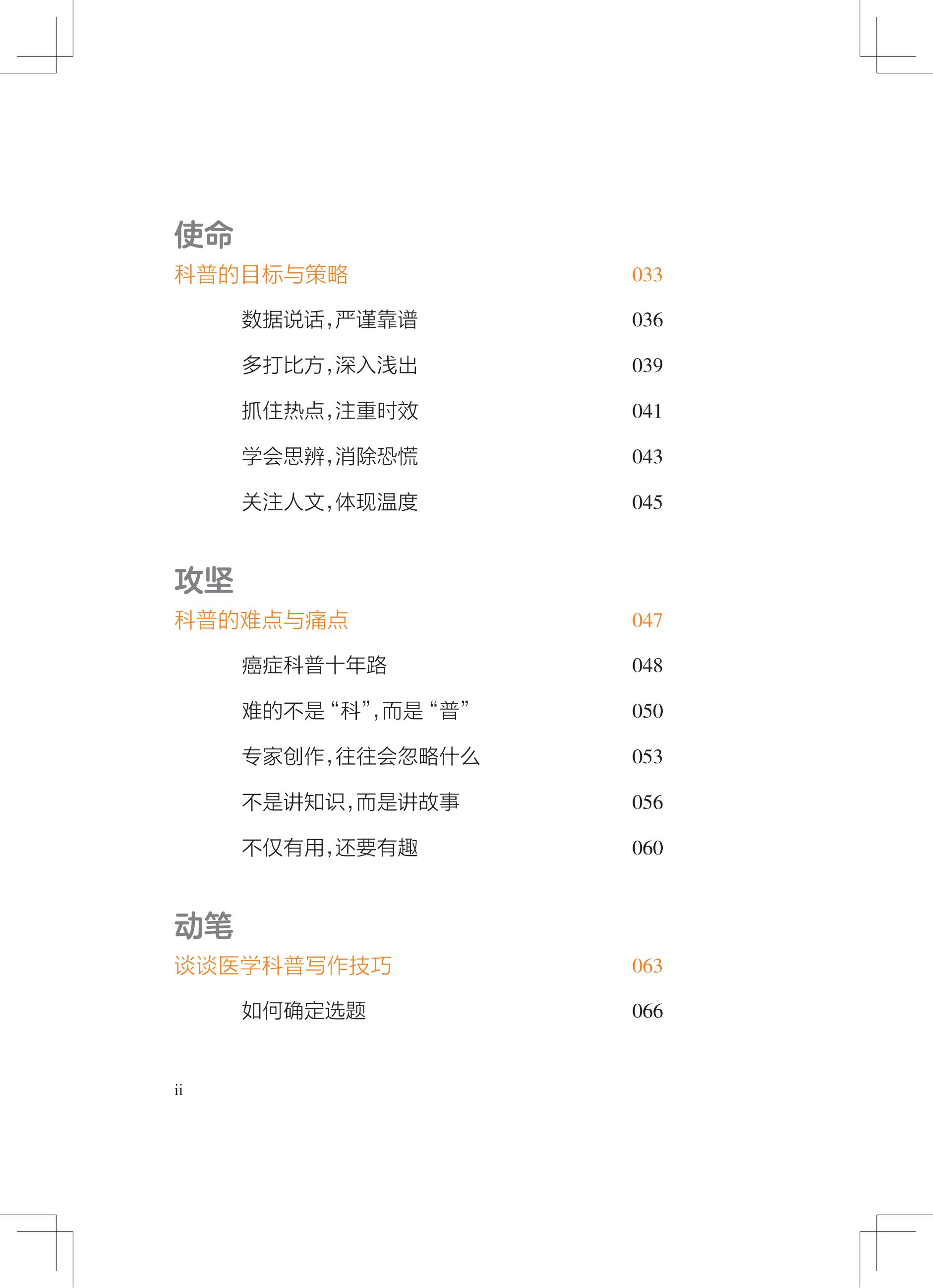 《“健康中国2030”规划纲要》与后续职称改革政策,已从战略高度明确了健康科普是每位医生的职责与担当。为此,我们与科学普及出版社携手策划了本书,为医务人员撰写优秀的科普作品提供权威、全面的指导,希望大家在“一看就懂、一学就会、一用就灵”的高效科普写作实务指导下,创作出更多优秀健康科普作品,造福百姓。