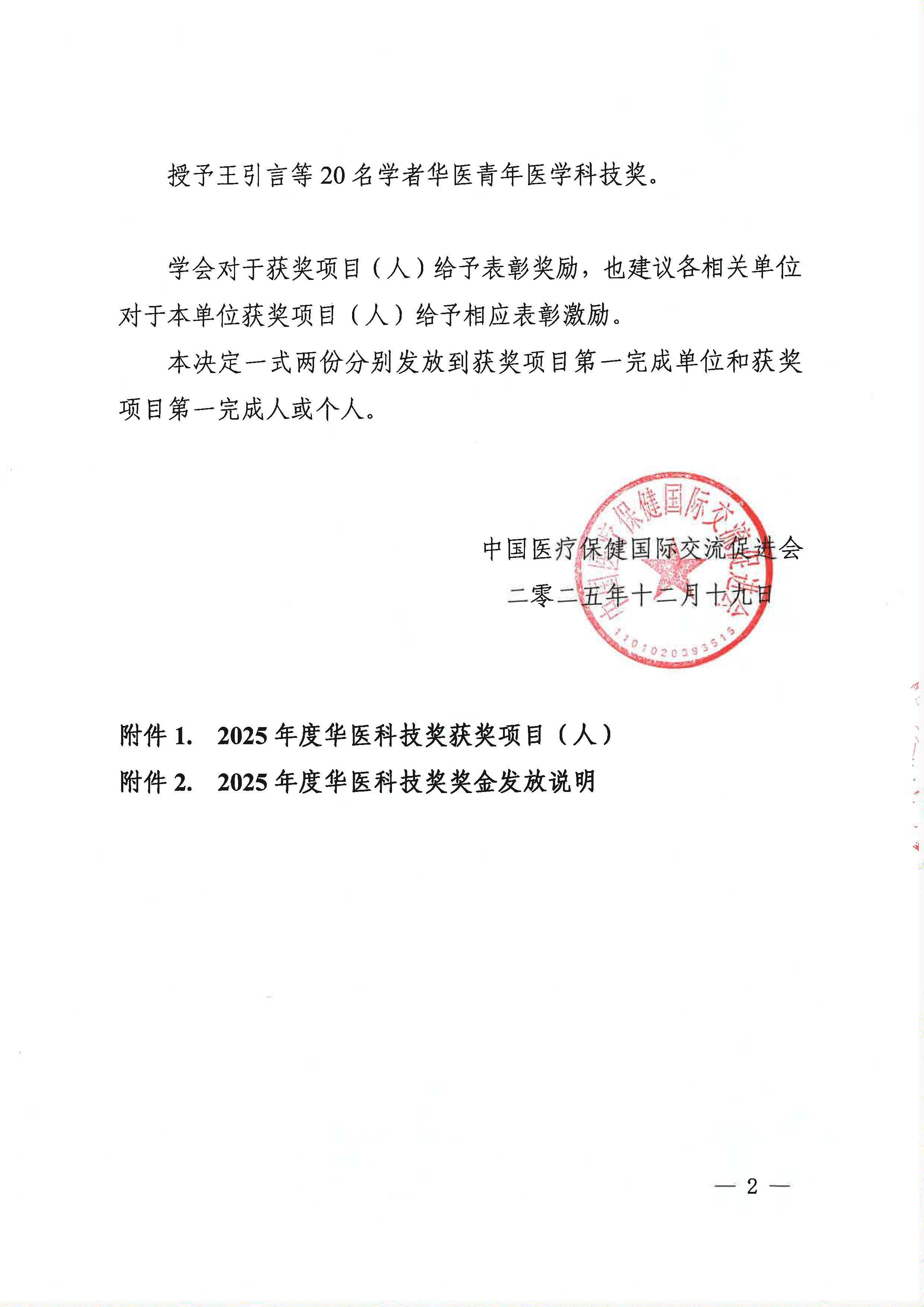 025年12月20日,2025年度华医科技奖颁奖大会在北京隆重举行。