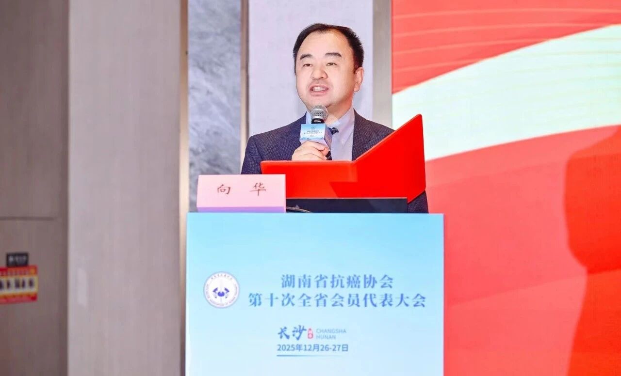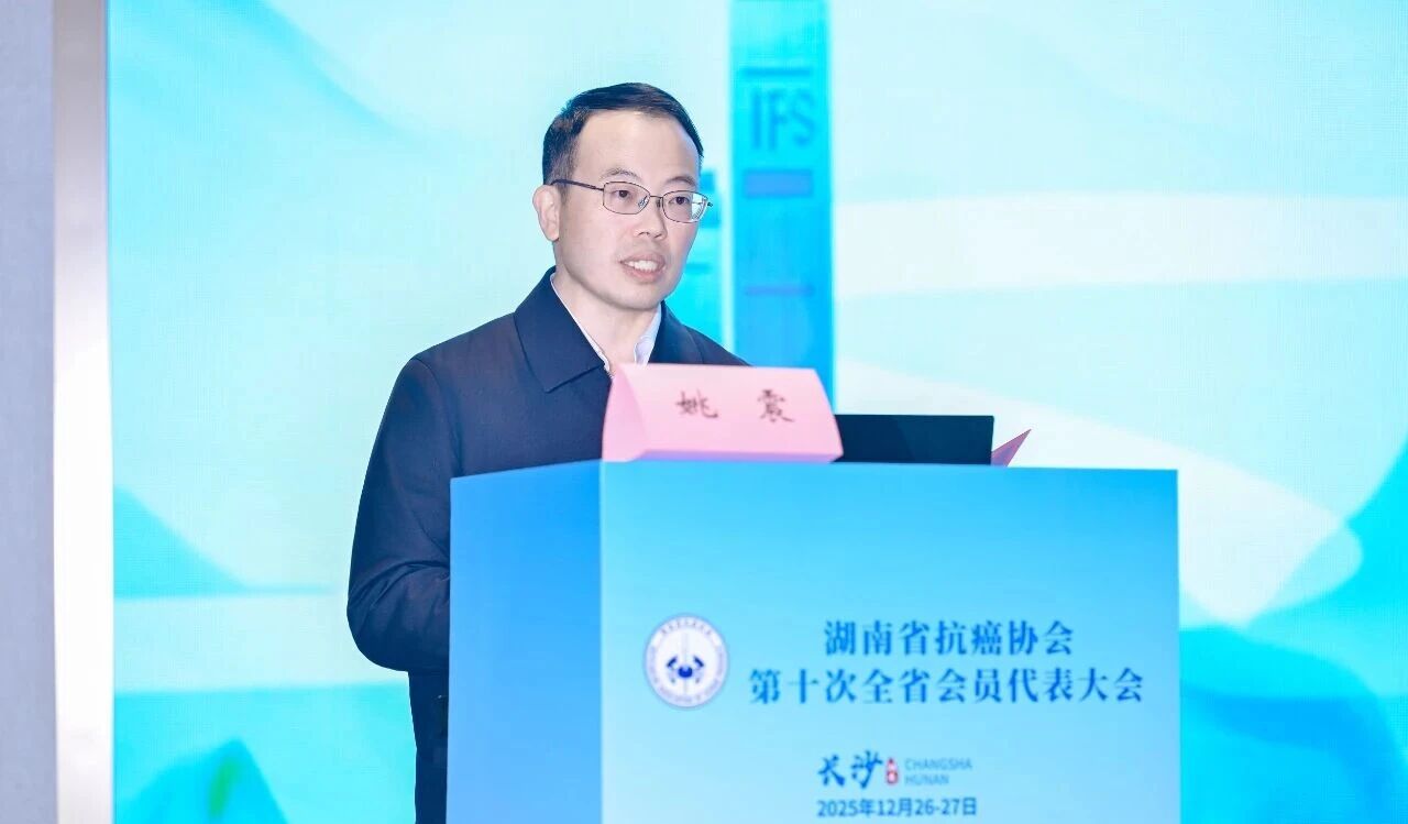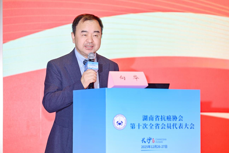 2025年12月27日,湖南省抗癌协会第十次全省会员代表大会在长沙隆重召开。会议严格遵循社会组织换届程序,全面总结了第九届理事会工作,选举产生了新一届理事会成员,并规划了未来发展方向。湖南省师范大学医学部党工委书记、医学部主任祝益民,湖南省卫生健康委员会党组成员、副主任常实,湖南省科学技术协会党组成员、副主席(提名)姚震,湖南省民政厅社会组织管理局科长李魅荻,湖南省肿瘤医院党委书记蔡宏坤,湖南省抗癌协会理事长、湖南省肿瘤医院院长向华以及来自全省各级医疗卫生机构的领导、专家、会员代表300余人参加本次会议。