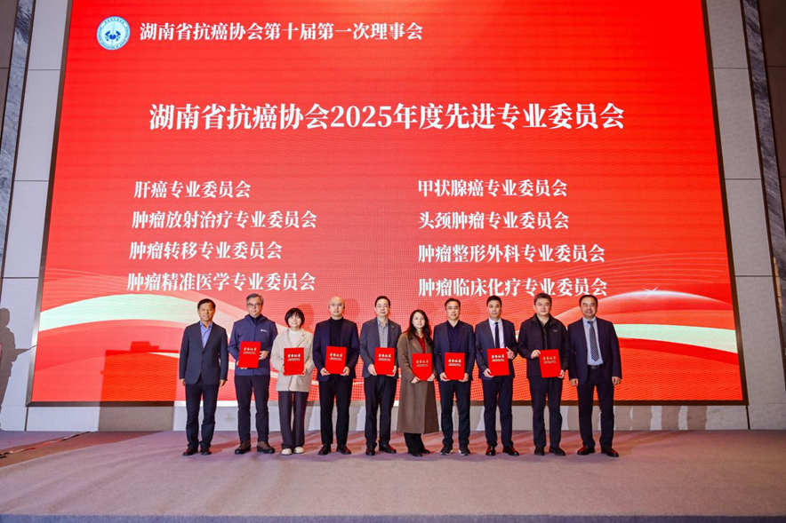 湖南省抗癌协会第十届第一次理事会无记名投票选举产生了第十届理事会理事长、副理事长、常务理事、秘书长及第一届监事。同时表彰了2025年度先进集体,先进集体共10个,分别是:常德市抗癌协会、衡阳市抗癌协会、肝癌专业委员会、肿瘤放射治疗专业委员会、肿瘤转移专业委员会、肿瘤精准医学专业委员会、甲状腺癌专业委员会、头颈肿瘤专业委员会、肿瘤整形外科专业委员会、肿瘤临床化疗专业委员会。