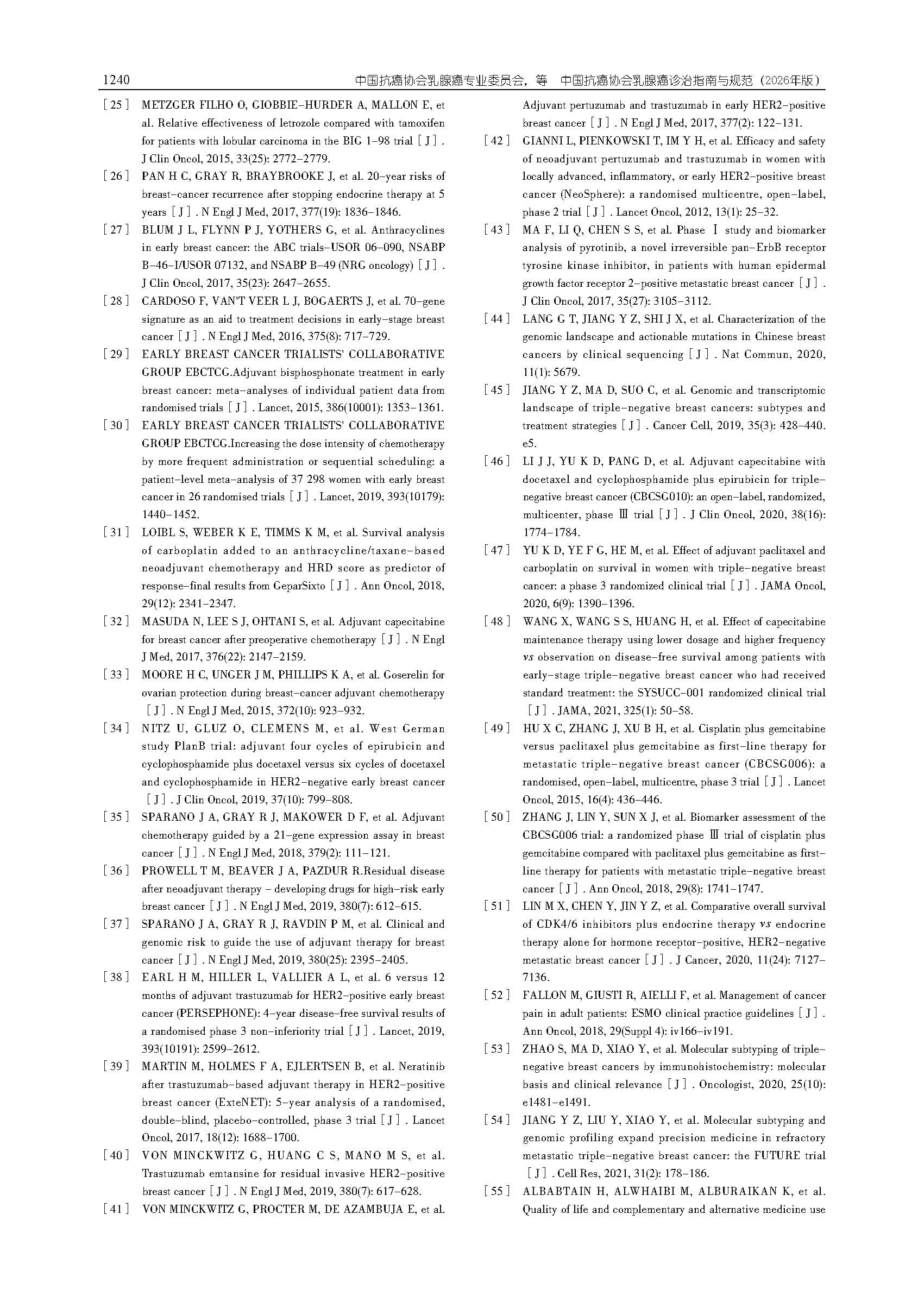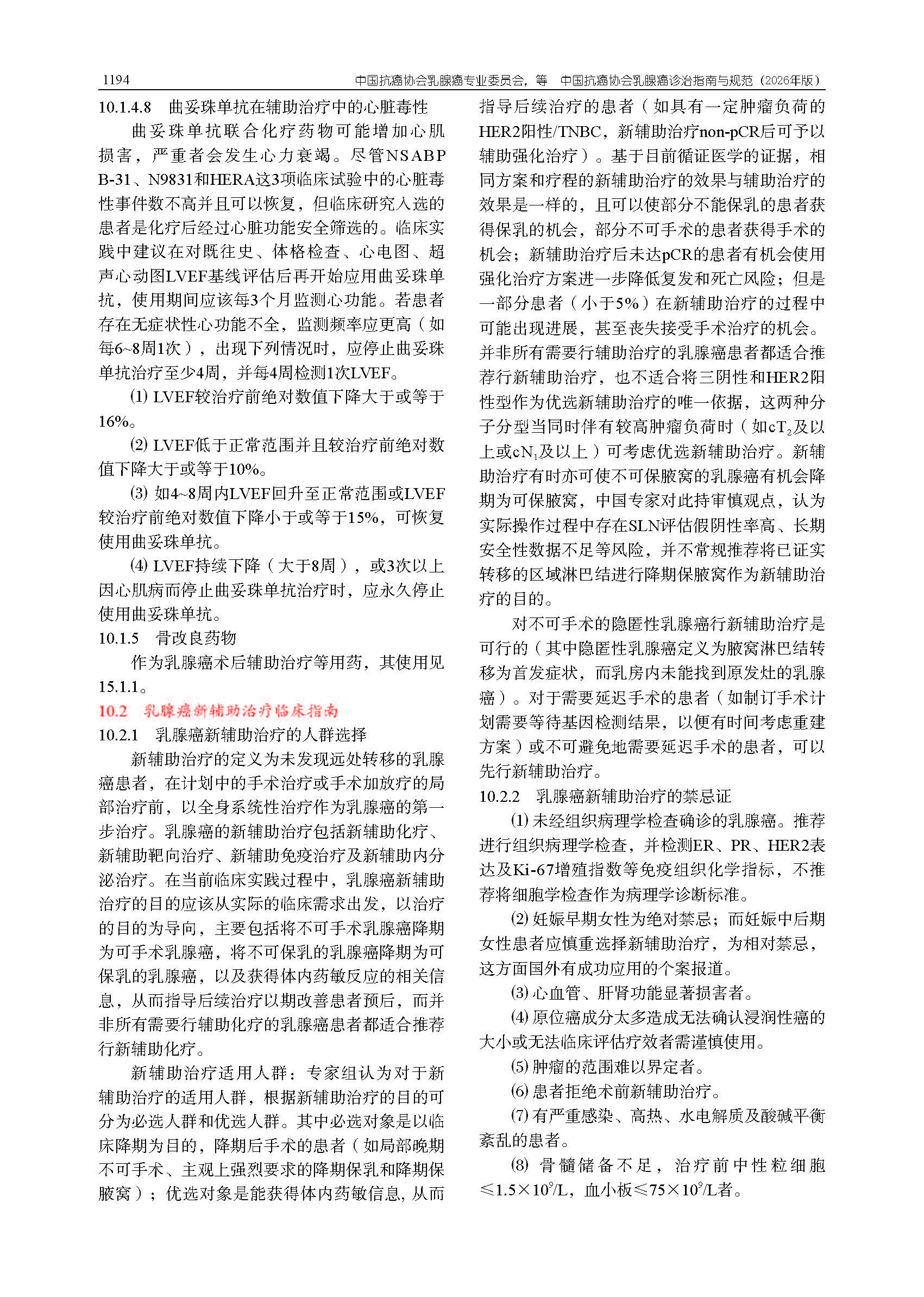中国抗癌协会乳腺癌专业委员会,中华医学会肿瘤学分会乳腺肿瘤学组. 中国抗癌协会乳腺癌诊治指南与规范(2026年版)[J]. 中国癌症杂志, 2025, 35 (12): 1157-1255.
