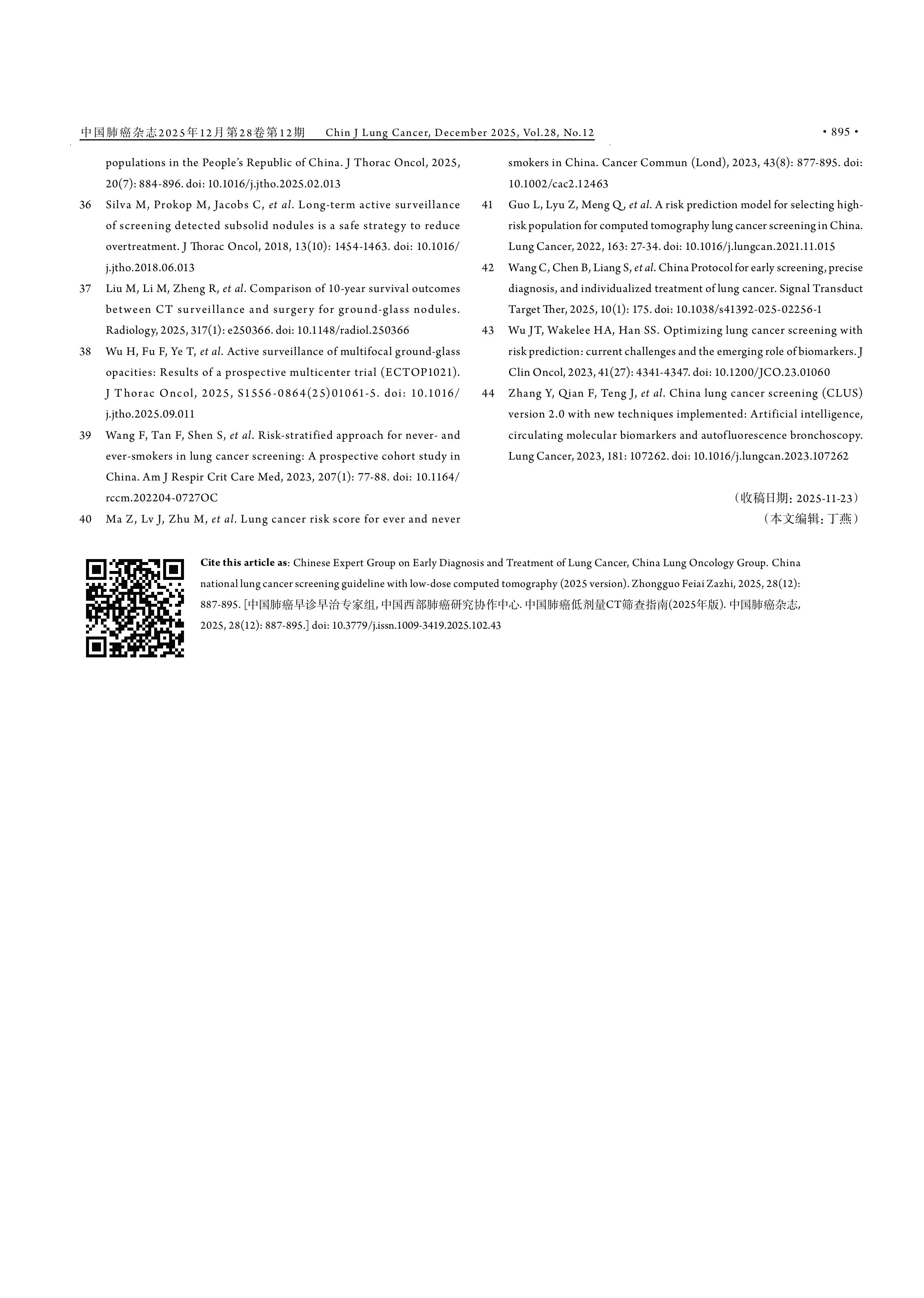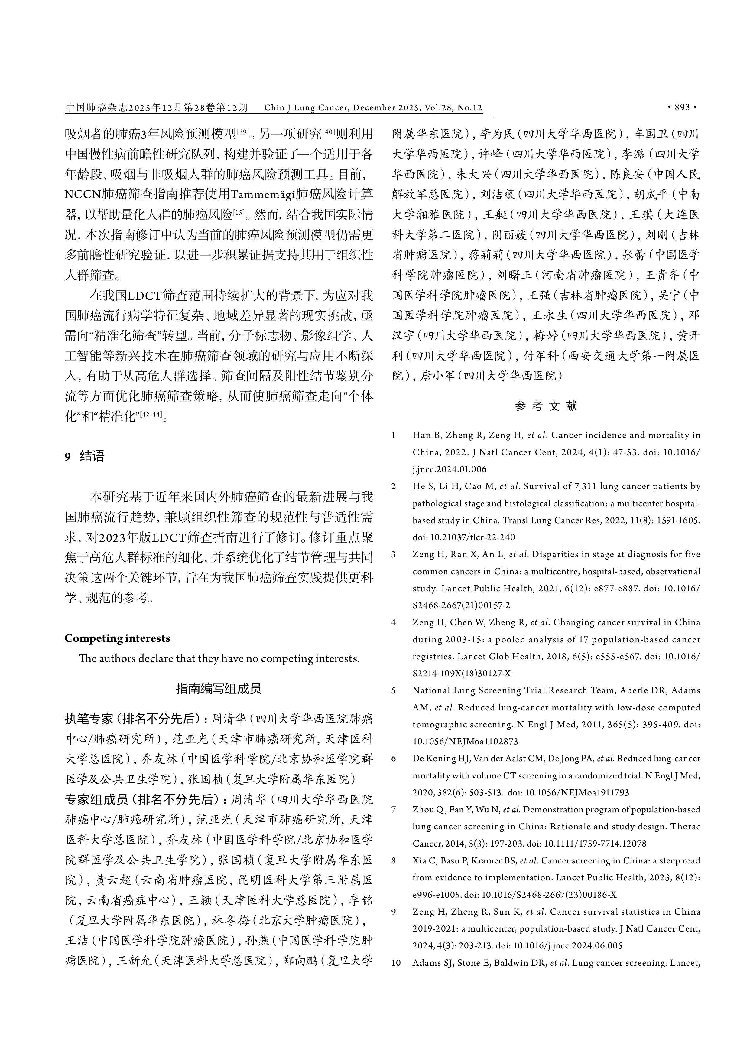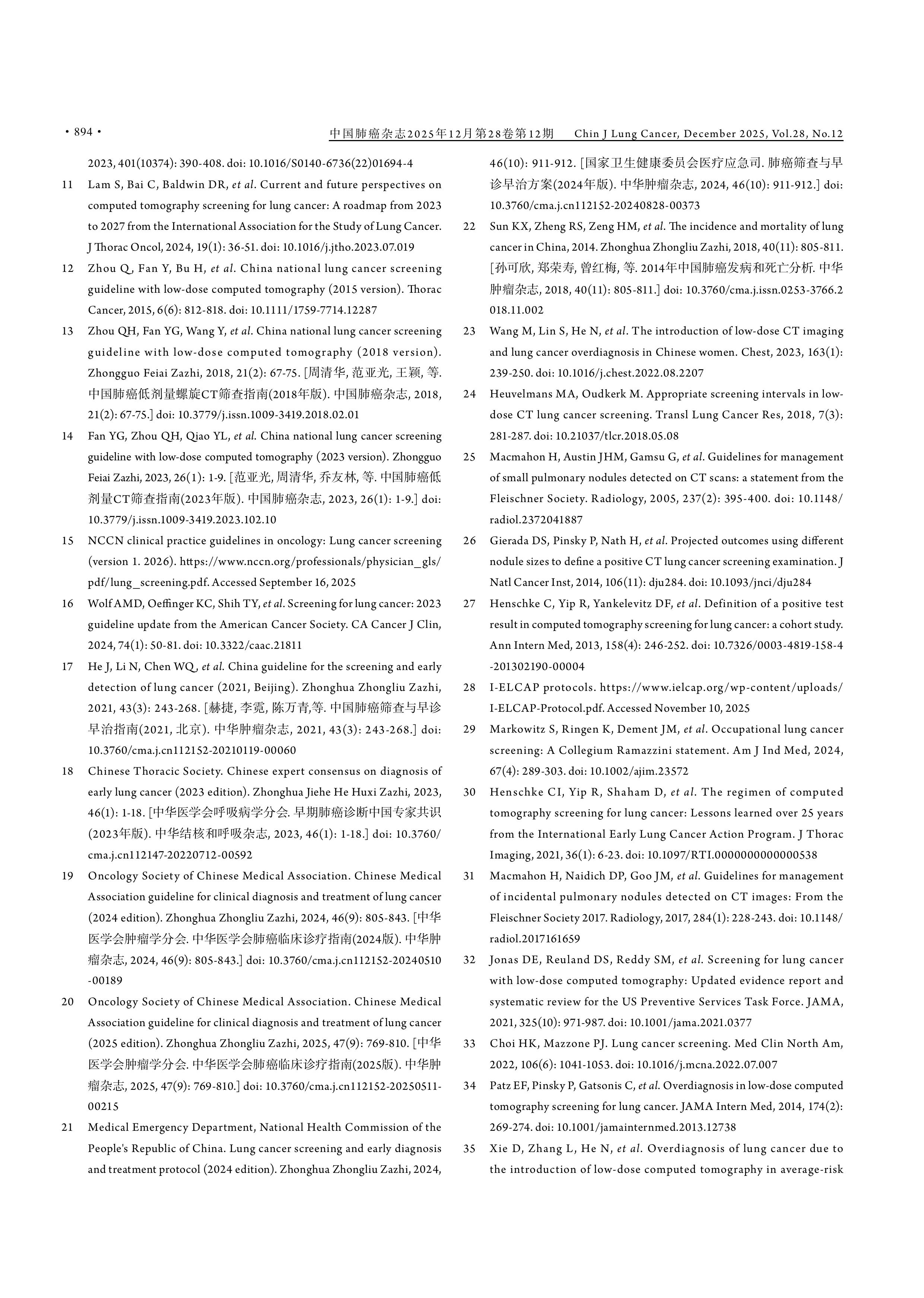 引用本文:中国肺癌早诊早治专家组, 中国西部肺癌研究协作中心. 中国肺癌低剂量CT筛查指南(2025年版). 中国肺癌杂志,2025, 28(12): 887-895.
