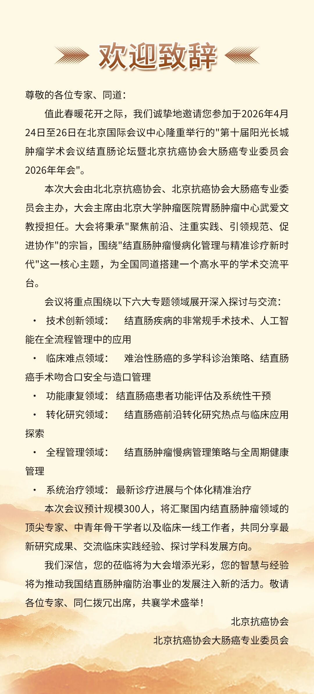 会议预告 | 第十届阳光长城肿瘤学术会议结直肠论坛暨北京抗癌协会大肠癌专业委员会2026年年会