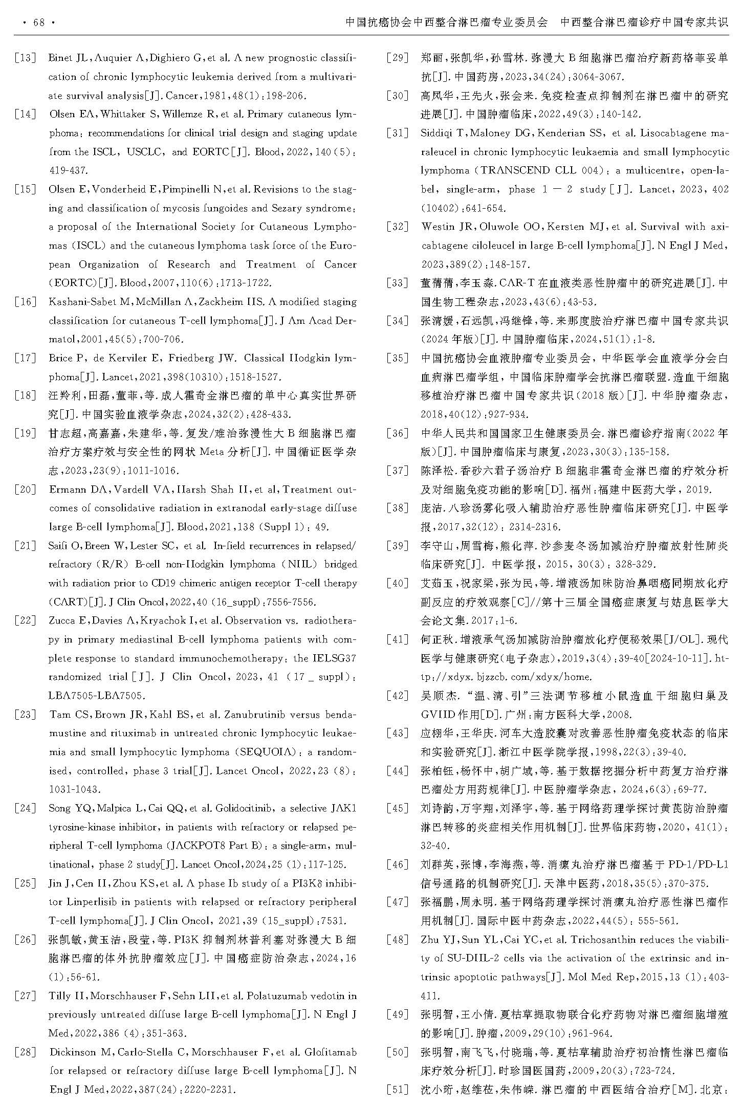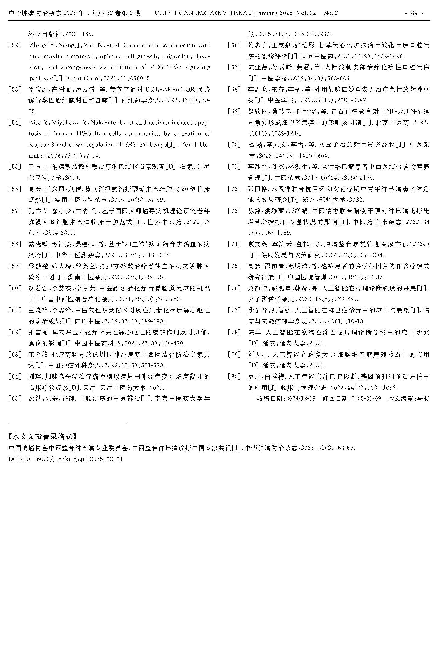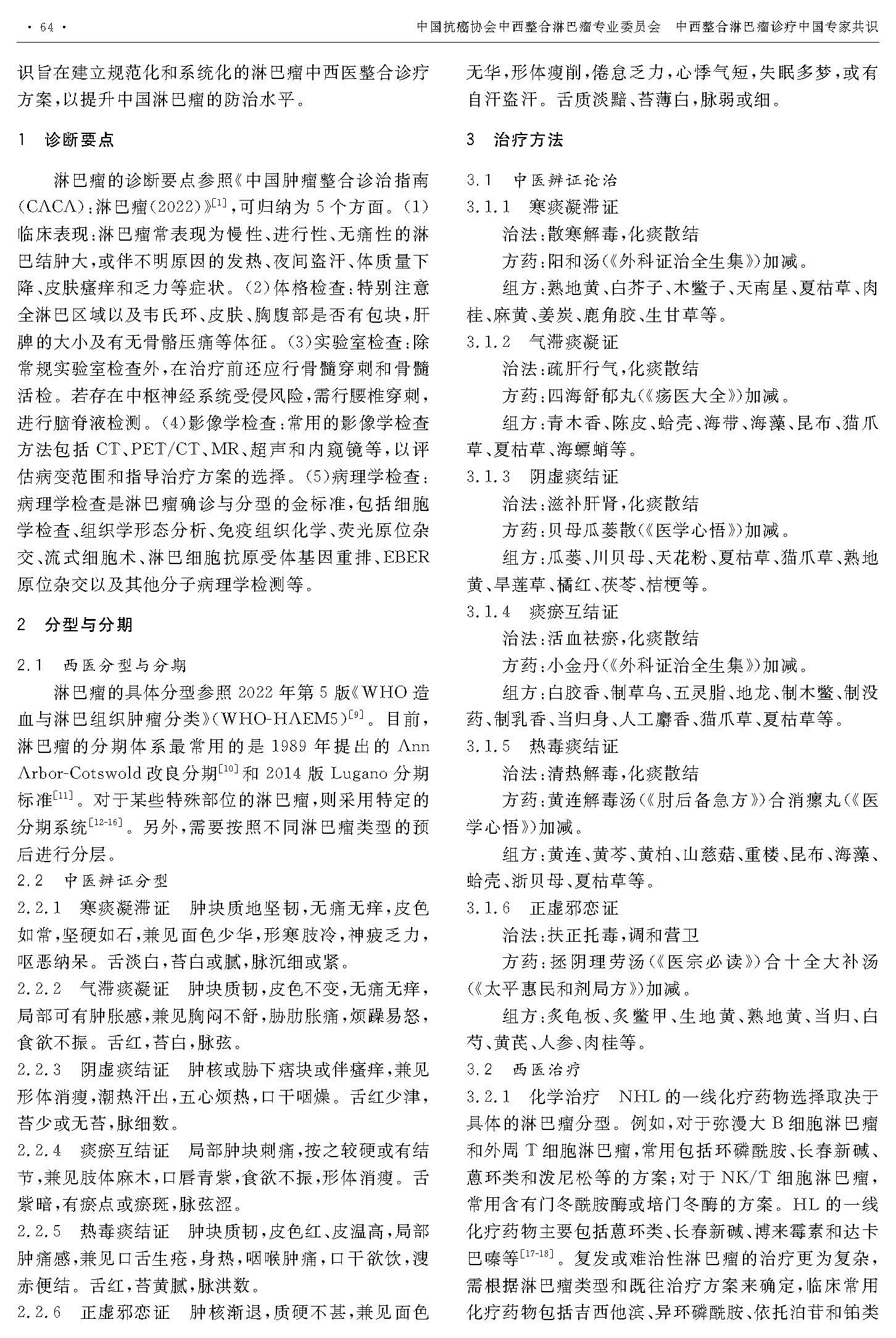 引用本文:中国抗癌协会中西整合淋巴瘤专业委员会.中西整合淋巴瘤诊疗中国专家共识[J]. 中华肿瘤防治杂志, 2025, 32(2):63-69.
