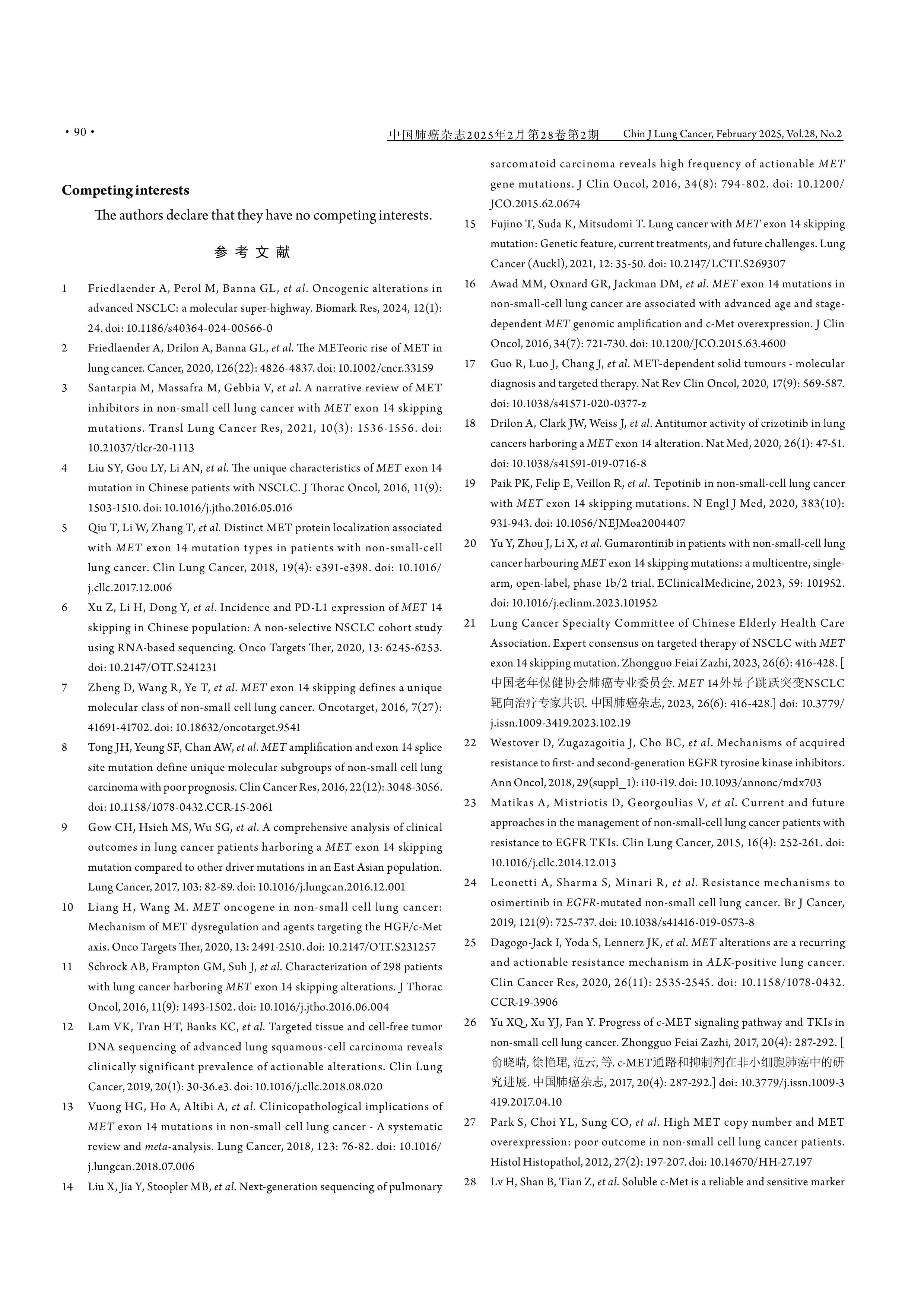 引用本文:陈军,韩宝惠,胡毅,等. MET异常NSCLC诊疗专家共识(2025版)[J]. 中国肺癌杂志, 2025, 28(2):81-93.