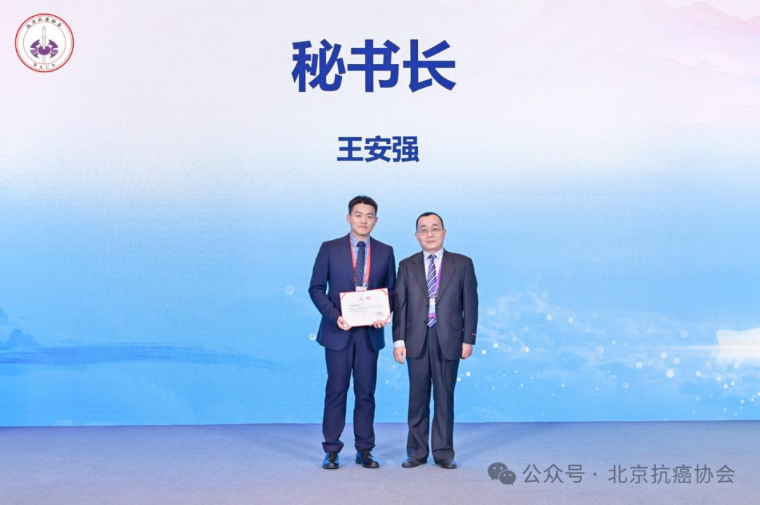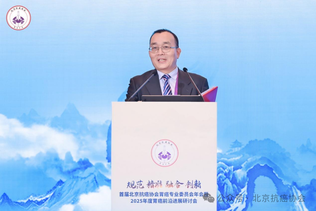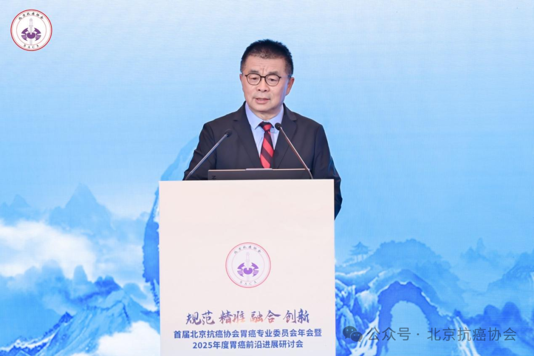 随后,季加孚理事长致辞并颁发证书。他表示,近年来胃癌综合治疗模式不断进步,但挑战仍然存在。值得欣喜的是,我国胃癌领域近20年发展迅速,尤其在早期诊断、转化研究和临床实践方面的成绩取得了国际认可,这离不开各位专家的积极参与和学术团结协作。北京抗癌协会胃癌专业委员会的成立将进一步提升我国胃癌诊疗的引领作用。相信未来在步召德教授的带领下,在各位副主委和青年才俊的共同努力下,专委会必将推动北京乃至全国胃癌防治事业迈向更高水平。希望专委会未来肩负责任,砥砺前行,为胃癌患者带来更多希望!