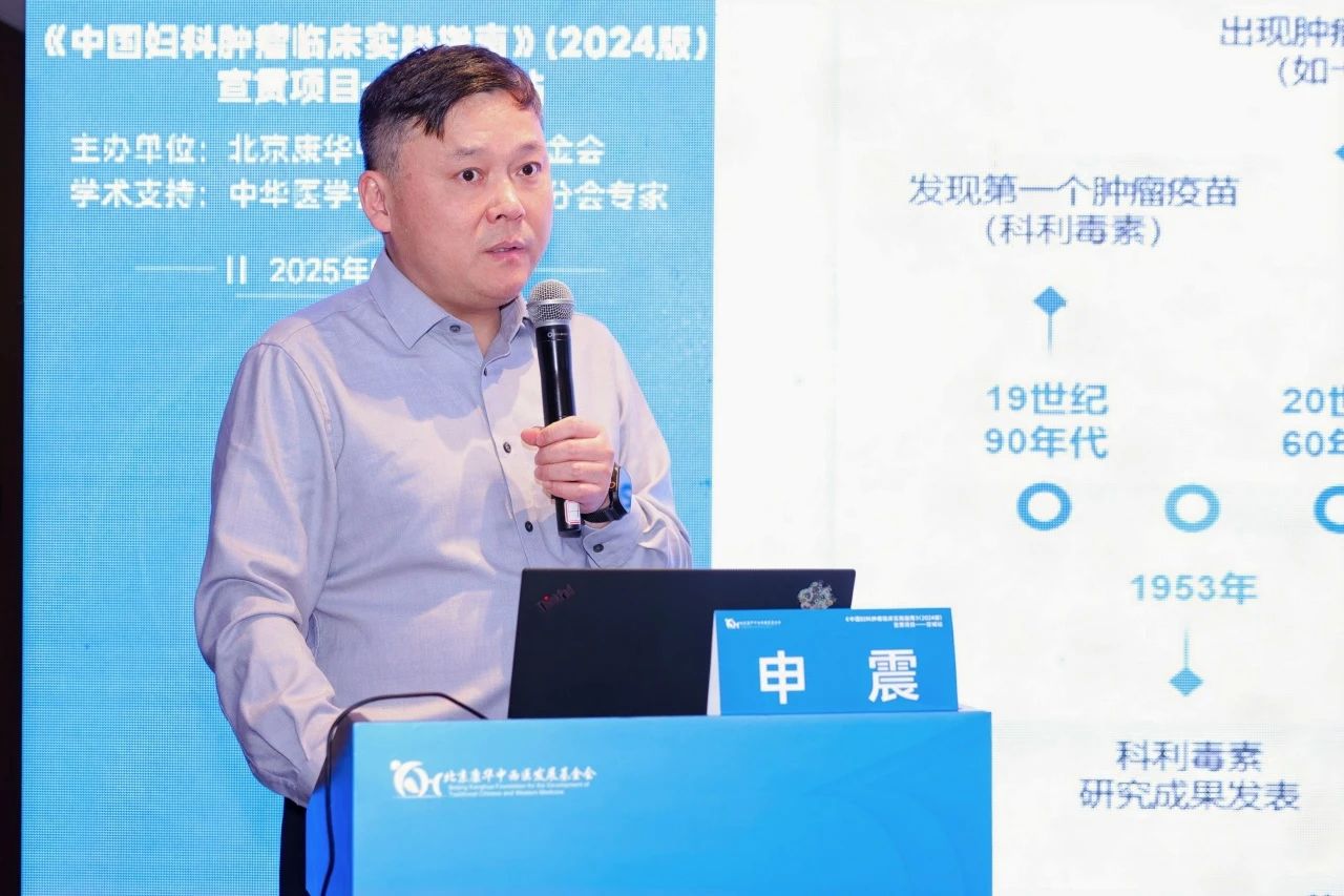 张丙忠教授、曲芃芃教授、梁志清教授外阴、阴道癌,子宫颈癌,以及卵巢恶性肿瘤等内容展开系统解读,重点阐释了诊断标准、治疗原则及管理要点。该指南通过整合循证医学证据与临床实践经验,为妇科肿瘤诊疗的标准化实施提供了科学指引,对规范临床决策流程、促进多学科协作诊疗模式发展具有重要指导意义。申震教授分享了《宫颈癌免疫治疗进展》,免疫治疗已成为宫颈癌治疗的关键策略,艾托组合抗体在复发/转移性宫颈癌二线及以上治疗中展现出了令人鼓舞的疗效和可管理的安全性。