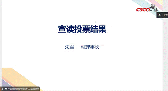 根据学会分支机构管理条例,参会委员进行了换届选举投票。根据选举结果,CSCO副理事长朱军宣布曹国春等23人当选第二届常务委员,李印教授当选为第二届主任委员;曹国春、傅剑华、韩泳涛、黄镜和沈琳当选为第二届副主任委员;黄镜担任秘书长,秦建军担任秘书。