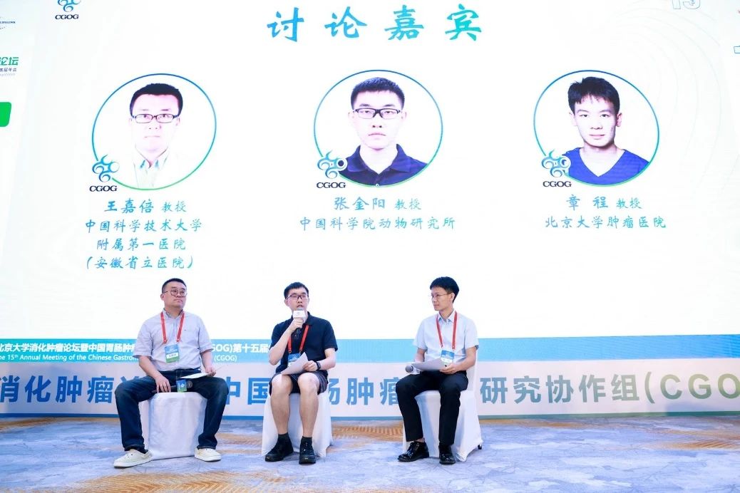 下半场的讨论嘉宾为中国科学技术大学附属第一医院王嘉倍教授、中国科学院动物研究所张金阳教授以及北京大学肿瘤医院章程教授。几位嘉宾就基于临床病例展开基础转化研究的研究范式,多组学检测技术的临床应用等问题展开探讨。
