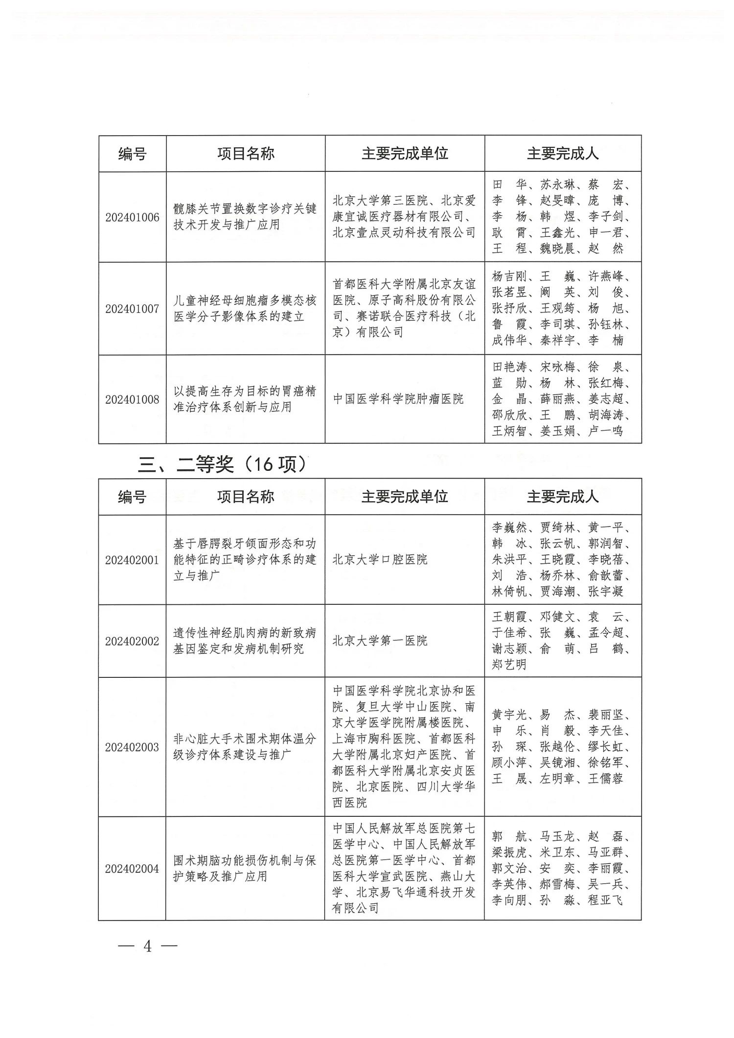 2024年度北京医学科技奖揭晓(附获奖全名单)
