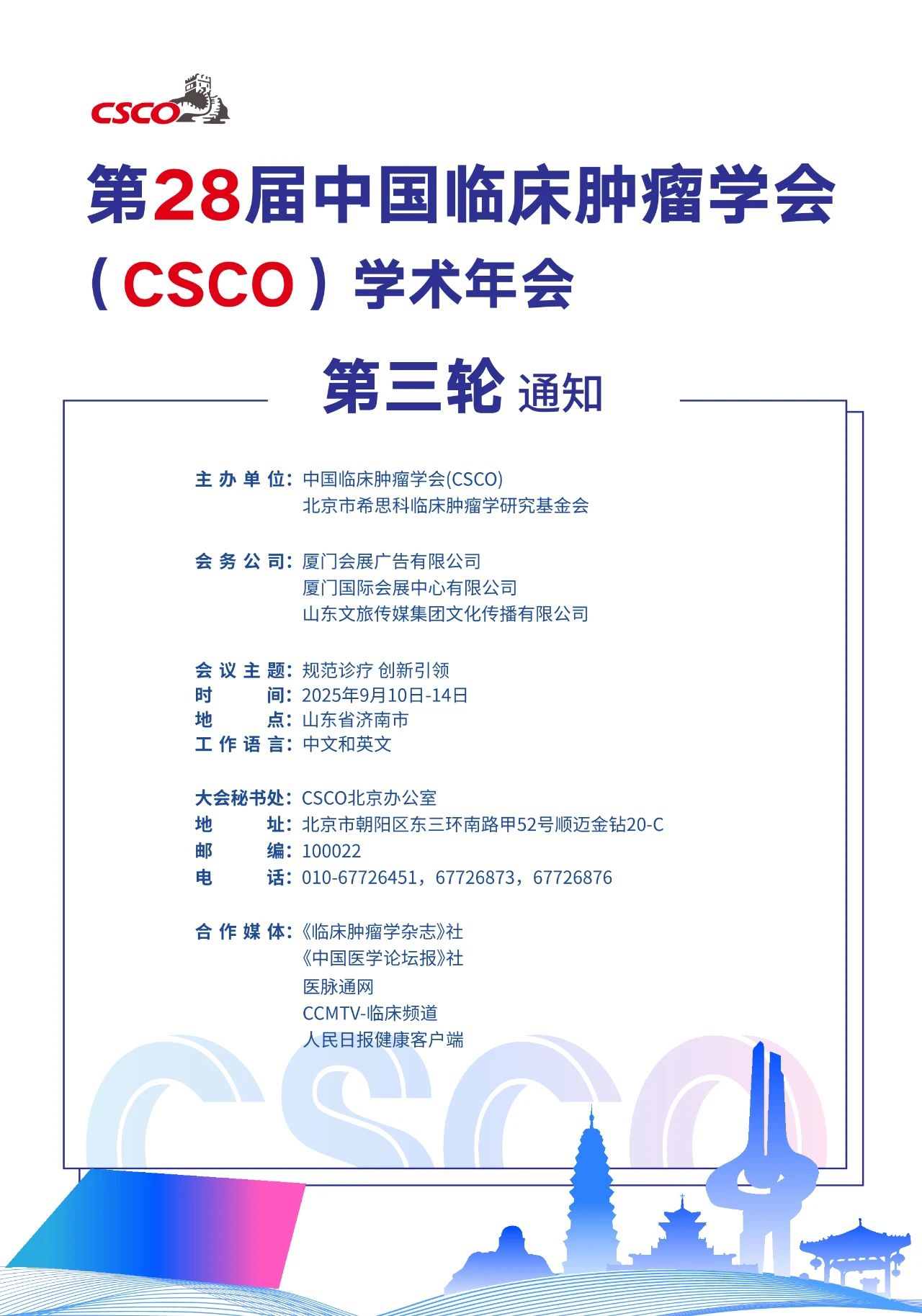 三轮通知丨第28届中国临床肿瘤学会(CSCO)学术年会