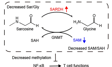 图 2 SARDH通过代谢通路影响T细胞功能的机制模型