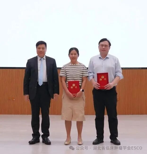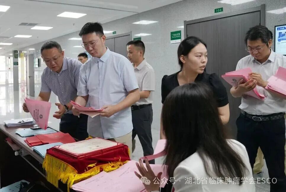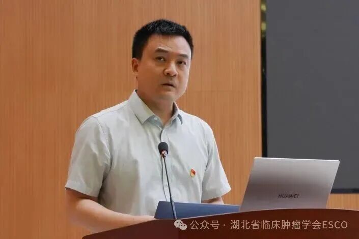 2025年8月31日,经湖北省科协和湖北省民政厅批准,湖北省临床肿瘤学会(ESCO)第三次会员代表大会在武汉大学人民医院(洪山院区)1号会议室隆重举行,会议选举产生了新一届理事会及领导班子。国之名医、武汉大学人民医院肿瘤医院院长、肿瘤中心主任宋启斌教授当选为新一届理事会理事长,华中科技大学同济医学院附属同济医院肿瘤中心主任褚倩教授、华中科技大学同济医学院附属协和医院肿瘤中心主任杨坤禹教授、武汉大学中南医院熊斌教授、湖北省肿瘤医院张克亮副院长、武汉市中心医院肿瘤中心主任卢宏达教授、襄阳市中心医院肿瘤医院院长易铁男教授、宜昌中心人民医院肿瘤中心主任许新华教授、十堰市太和医院肿瘤中心主任骆志国教授、黄冈市中心医院肿瘤中心主任邹佳华教授当选为副理事长,武汉大学人民医院院长助理胡钦勇教授当选为秘书长,武汉大学人民医院肿瘤中心肺部肿瘤科副主任许斌教授当选为监事长。