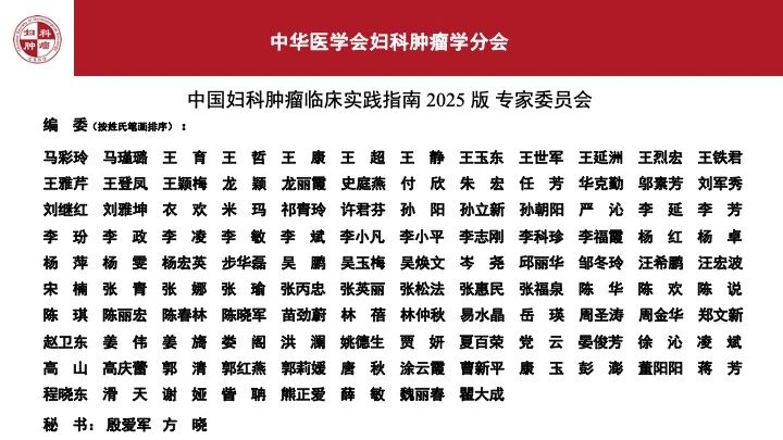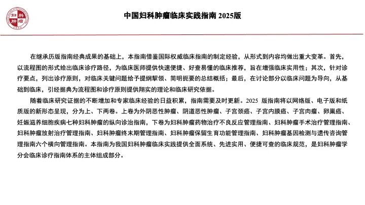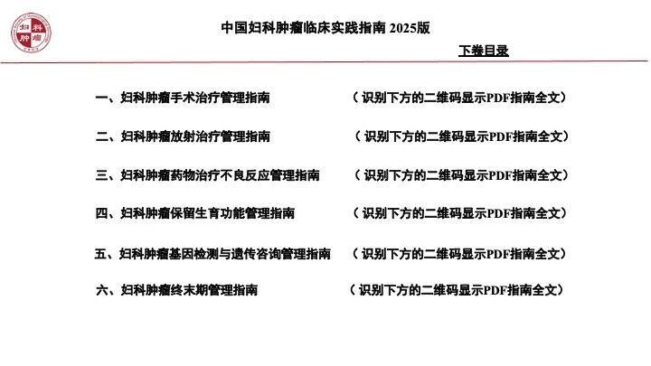 《中国妇科肿瘤临床实践指南》2025版正式发布(中华医学会妇科肿瘤学分会)