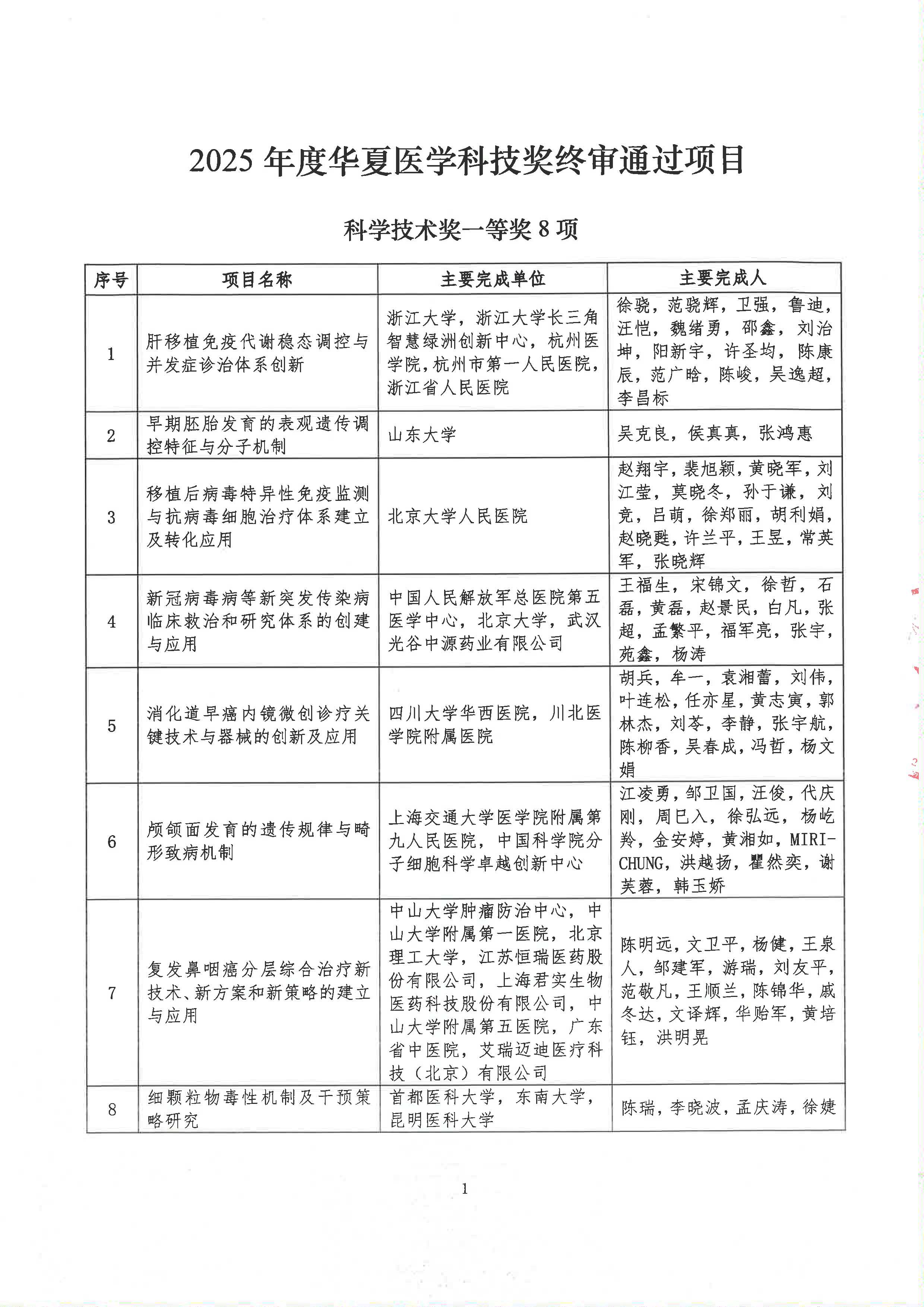 关于2025年度华夏医学科技奖终审通过项目公示的通知