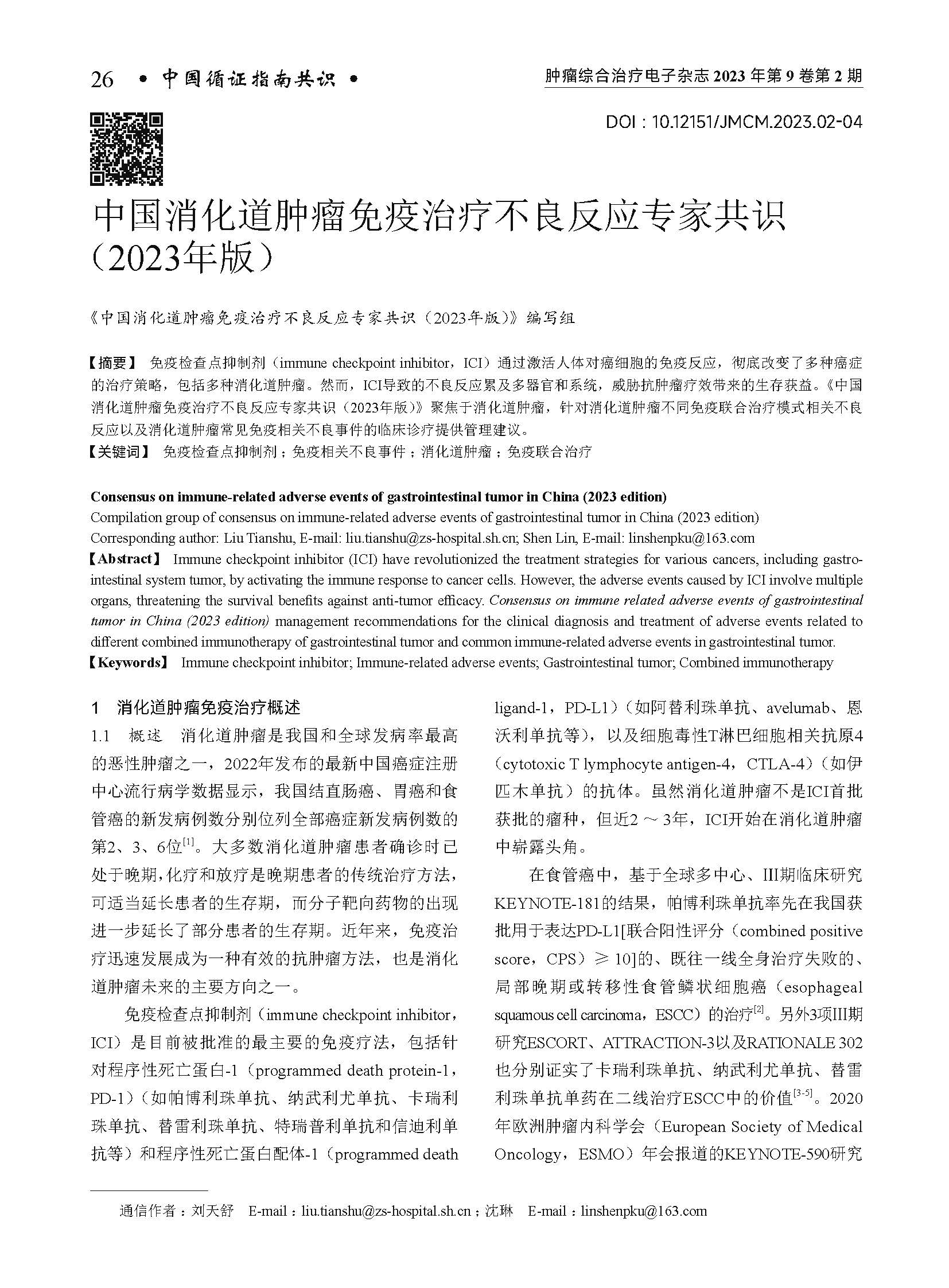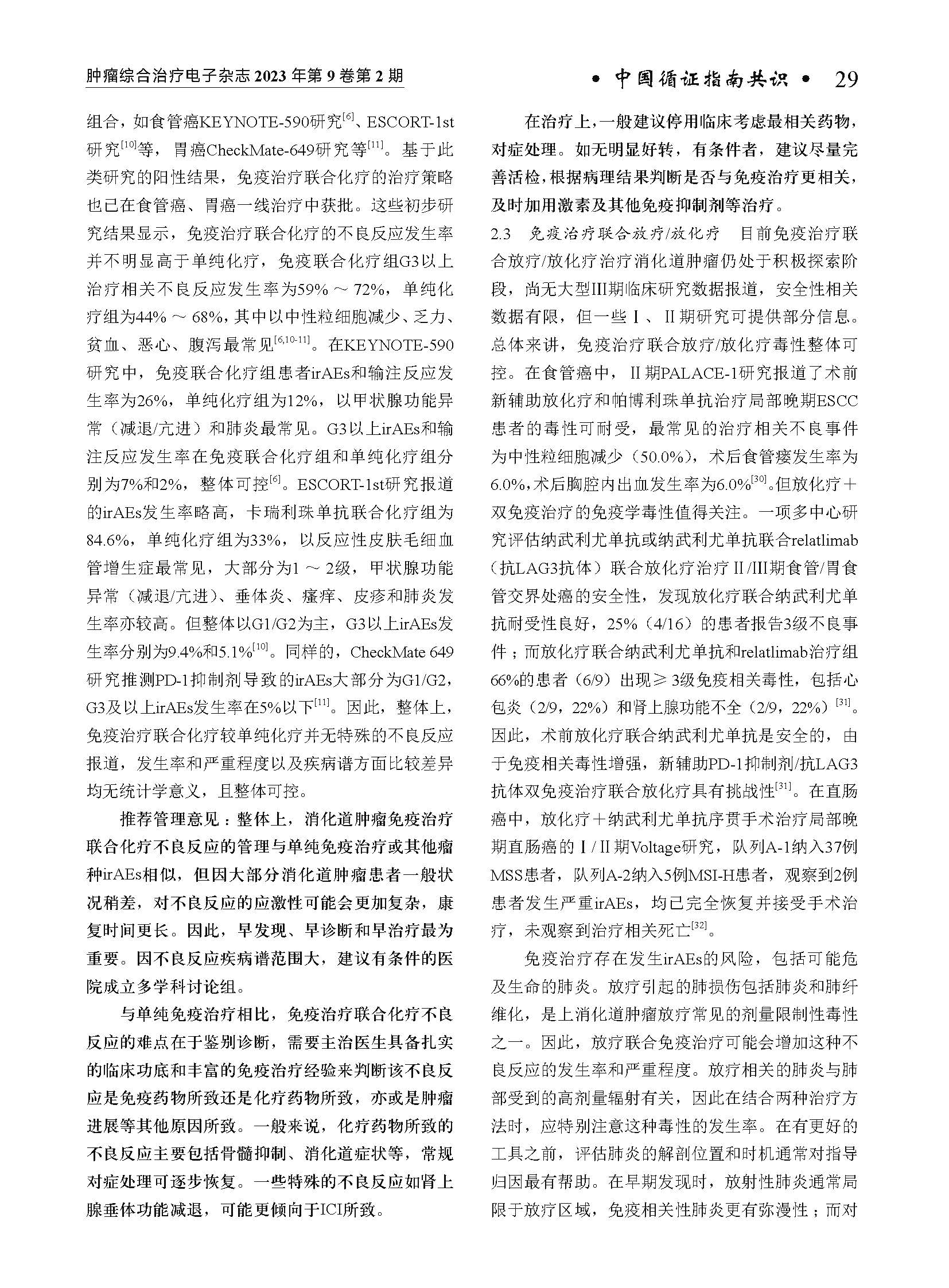 《中国消化道肿瘤免疫治疗不良反应专家共识(2023年版)》编写组. 中国消化道肿瘤免疫治疗不良反应专家共识(2023年版)[J]. 肿瘤综合治疗电子杂志, 2023, 9(2): 26-60
