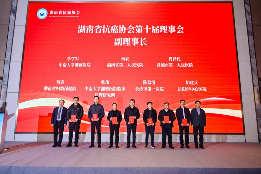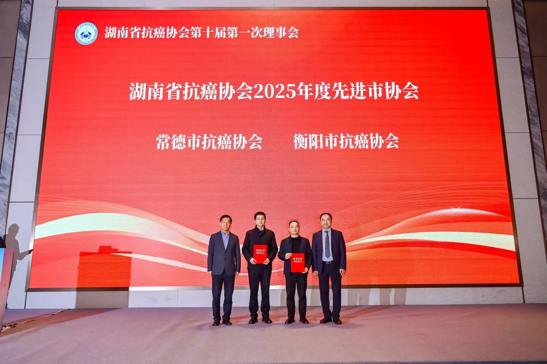 湖南省抗癌协会第十届第一次理事会无记名投票选举产生了第十届理事会理事长、副理事长、常务理事、秘书长及第一届监事。同时表彰了2025年度先进集体,先进集体共10个,分别是:常德市抗癌协会、衡阳市抗癌协会、肝癌专业委员会、肿瘤放射治疗专业委员会、肿瘤转移专业委员会、肿瘤精准医学专业委员会、甲状腺癌专业委员会、头颈肿瘤专业委员会、肿瘤整形外科专业委员会、肿瘤临床化疗专业委员会。