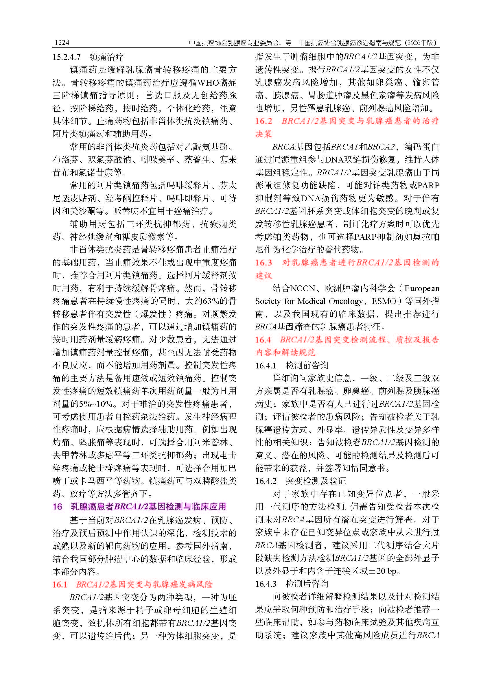 中国抗癌协会乳腺癌诊治指南与规范(2026年版)