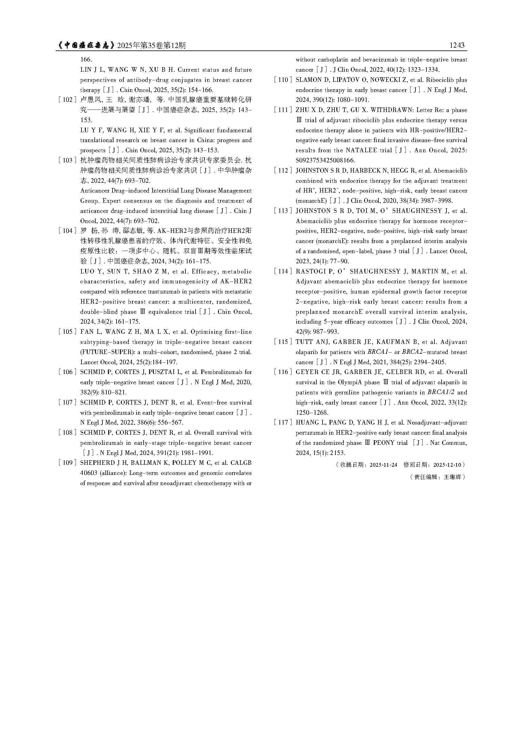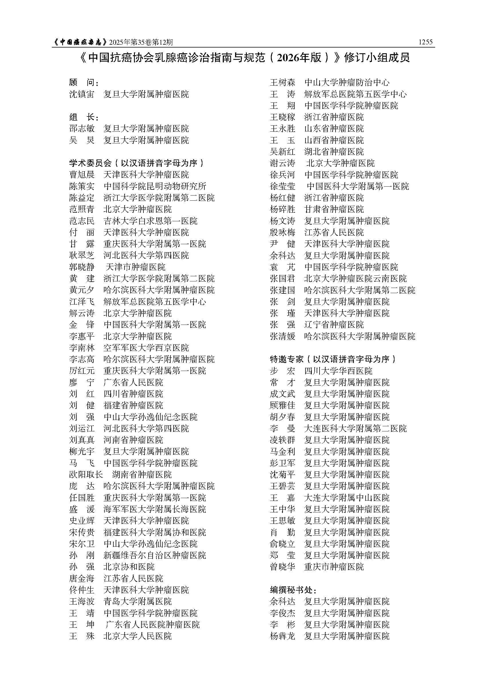 中国抗癌协会乳腺癌专业委员会,中华医学会肿瘤学分会乳腺肿瘤学组. 中国抗癌协会乳腺癌诊治指南与规范(2026年版)[J]. 中国癌症杂志, 2025, 35 (12): 1157-1255.