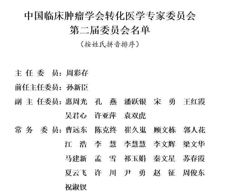 最后,指导委员会梁军副主委代表学会领导宣布本次换届会议取得圆满成功,对新一任专委会的成立表示热烈的祝贺,并对新一届专委会的工作愿景提出要求和指明方向,希望在新一届专委会主任委员带领下,各位委员能充分利用这个平台,团结合作有意愿、有志向肿瘤转化医学研究的临床医生,共同提高我国肿瘤的诊疗水平,为保障人民健康作出积极贡献。