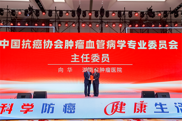 四月的长沙,春意正浓。2025年4月10-12日,第三十一届全国肿瘤防治宣传周(湖南站)启动会暨中国抗癌协会首届肿瘤血管病学大会在长沙顺利举行。同期,中国抗癌协会肿瘤血管病学专业委员会正式成立。中国抗癌协会樊代明理事长、杨志平副秘书长等领导专家出席成立大会。由杨志平副秘书长主持大会,大会以无记名等额投票的方式选举产生第一届专业委员会领导机构。湖南省肿瘤医院向华教授当选为肿瘤血管病学业委员会首届主任委员,四川省肿瘤医院易群教授、中日友好医院叶志东教授、复旦大学附属中山医院符伟国教授、北京协和医院郑月宏教授、广东省人民医院张靖教授、中国医学科学院肿瘤医院李肖教授当选为副主任委员。专委会聘任滕皋军院士为名誉主任委员。