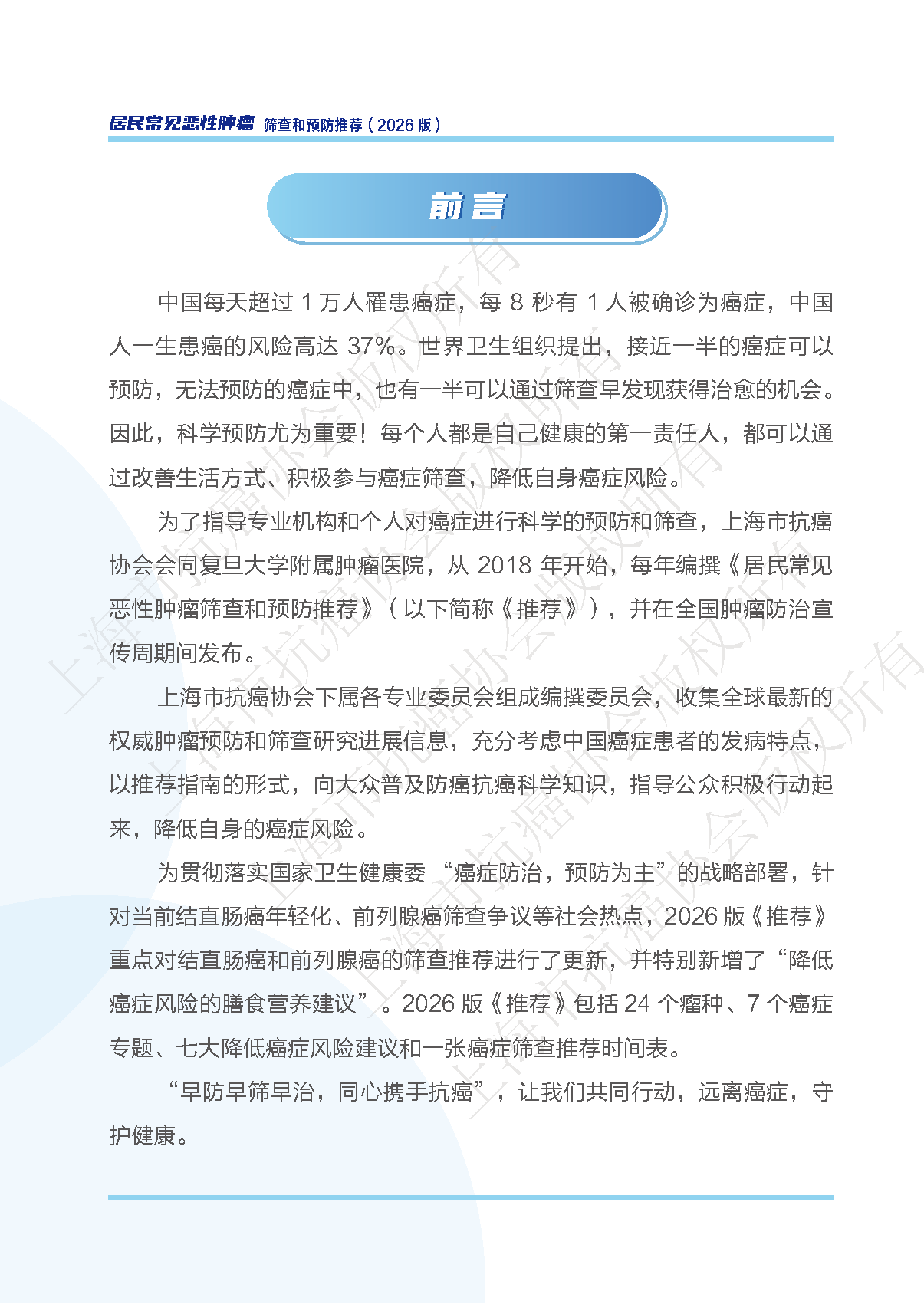 《居民常见恶性肿瘤筛查和预防推荐(2026版)》发布(附全文)