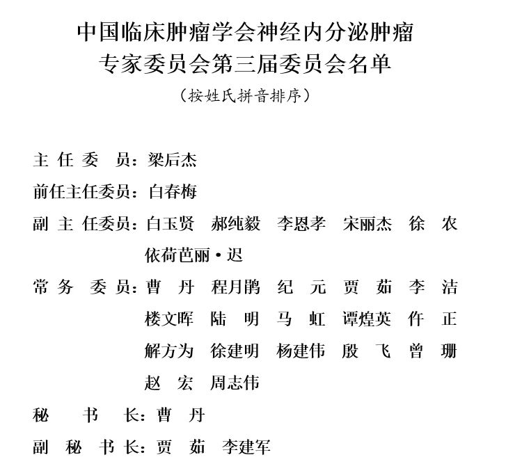 首先由第二届专委会主任委员白春梅教授进行工作总结。白春梅教授首先回顾了神经内分泌肿瘤专委会的发展历程:专委会2011年首次成立,2016年CSCO成为国家一级学会后确立第一届神经内分泌肿瘤专家委员会委员共42名,2021年第二届专委会委员达到61名。第二届专委会的工作内容包括:《CSCO神经内分泌肿瘤诊疗指南》的首次撰写和2次更新;发表《中国肺和胸腺神经内分泌肿瘤专家共识》和《中国胃肠胰神经内分泌肿瘤专家共识》(2022年版)二部共识;在全国范围内组织线上线下20余场规范化巡讲,对指南内容进行推广,开展继续教育;打造品牌会议,如CSCO神经内分泌肿瘤年会、指南发布会等,积极推动学术沟通。通过病例比赛等形式,促进多学科建设及人才培养。同时推动多中心临床研究项目的进展。 贾茹教授介绍了本次换届的筹备情况。2025年1月5日,学会按照《分支机构管理条例》下达换届通知。根据学会规定,讨论提出留任和不留任成员建议名单以及新增成员意向和建议名单,并在广泛征集专委会委员意见基础上形成新一届候选委员名单,并提交学会审核。本次增补后委员达到114名,新增委员59人,新增成员比例高达51.8%,涉及8个学科,研究生导师比例达74%。 刘凌主任介绍了学会关于分支结构换届的具体程序和要求,宣读了民政部部管社会组织综合党委关于开展论坛活动清理整治的要求,并宣布学会同意换届的批复。 主委候选人梁后杰教授进行竞聘演讲。他充分肯定了白春梅教授及第二届神经内分泌肿瘤专家委员会的工作成绩,介绍了个人简历,总结了在学会的工作经历,并提出未来的工作设想,包括:加强专委会团队建设和人才培养,构建更加完善的学科框架;持续更新并积极推进指南本土化实践,确保CSCO指南成为最具权威性、科学性、公平性和实用性的NET诊疗指南;推出多部专家共识,作为NET指南的重要补充;加强数据平台建设,积极开展临床研究;积极推进优势资源下沉,开展指南巡讲及多种形式的继续教育;积极开展科普工作,着手撰写大众版NET指南,携手CSCO患教专委会,出版《患教手册》,开展多种形式的患者教育;打造“CSCO神经内分泌肿瘤年会”等品牌会议以及搭建多元化的学术交流平台,大力推进国内外交流与合作。 接下来,专委会全体委员候选人进行线下无记名投票。CSCO指导委员会副主委梁军教授宣布投票结果:白春梅教授等25名候选人当选第三届CSCO神经内分泌肿瘤专家委员会常务委员,白玉贤、郝纯毅、李恩孝、宋丽杰、徐农、依荷芭丽·迟教授当选副主任委员,梁后杰教授当选主任委员,并决定由曹丹教授兼任秘书长,贾茹教授、李建军教授兼任副秘书长。 CSCO理事长于金明院士和指导委员会副主委梁军教授致辞并提出了殷切期望。最后由梁军教授为新任主委及副主委颁发聘书。 第三届CSCO神经内分泌肿瘤专家委员会换届会议圆满结束,感谢白春梅主委与第二届专委会全体委员的辛苦付出,期待新一届专委会在学会和梁后杰教授的带领下砥砺前行,再创辉煌!