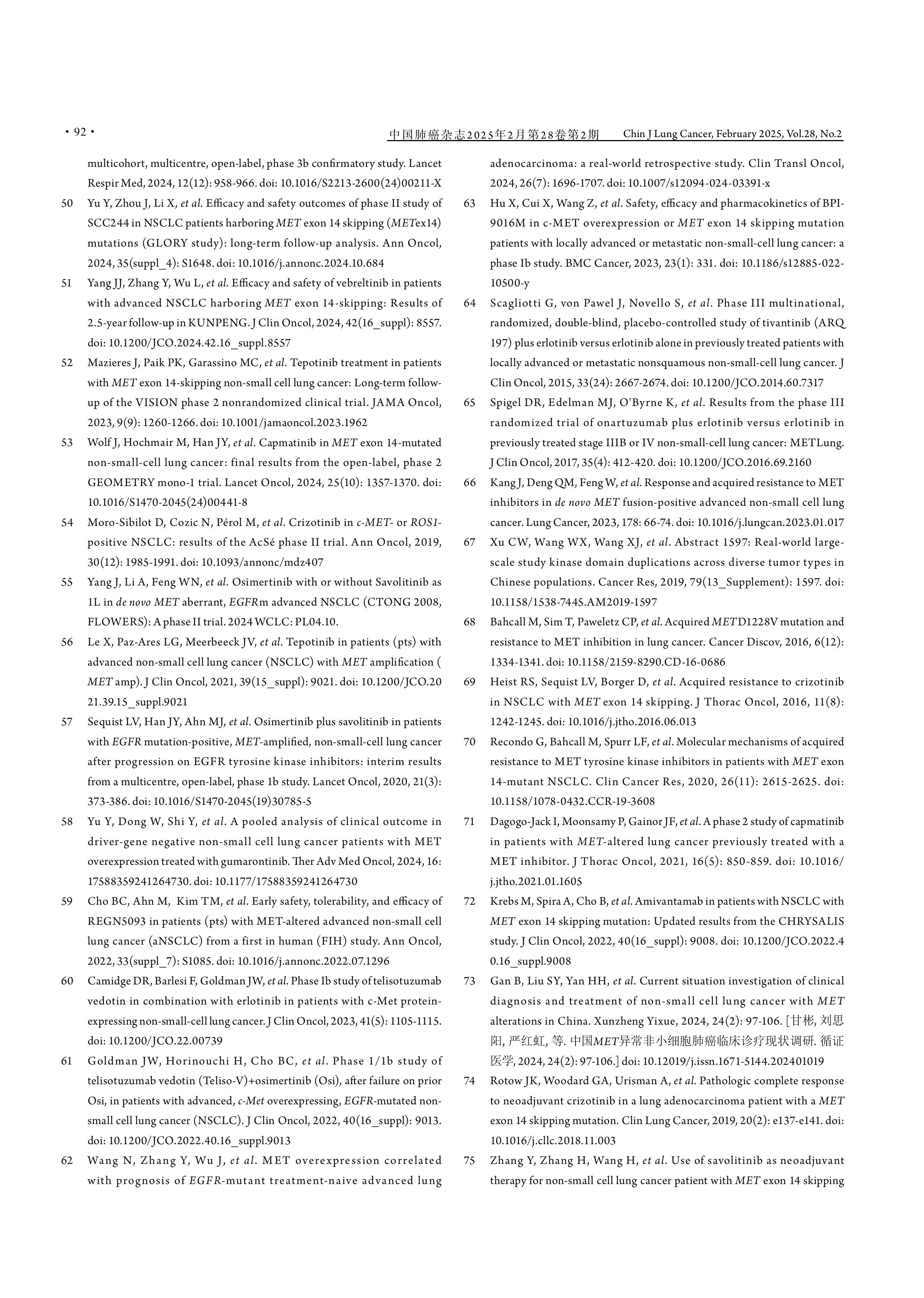 日前,中国老年保健协会肺癌专业委员会组织各专家委员结合临床实践经验并探寻循证医学证据,针对目前MET异常NSCLC诊断和治疗的临床问题给予专业建议,制定了《MET异常NSCLC诊疗专家共识(2025版)》,全文发表在《中国肺癌杂志》2025年第2期。