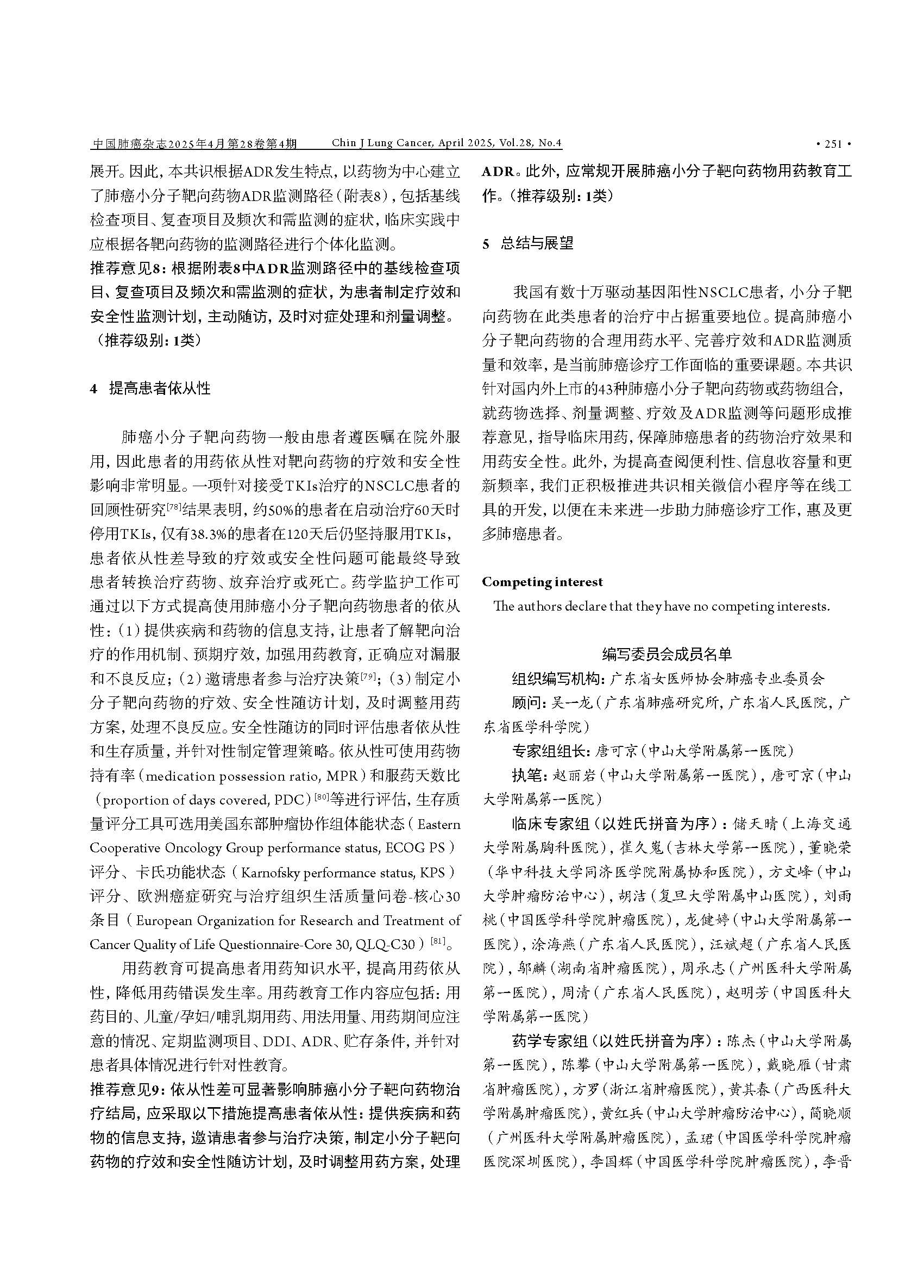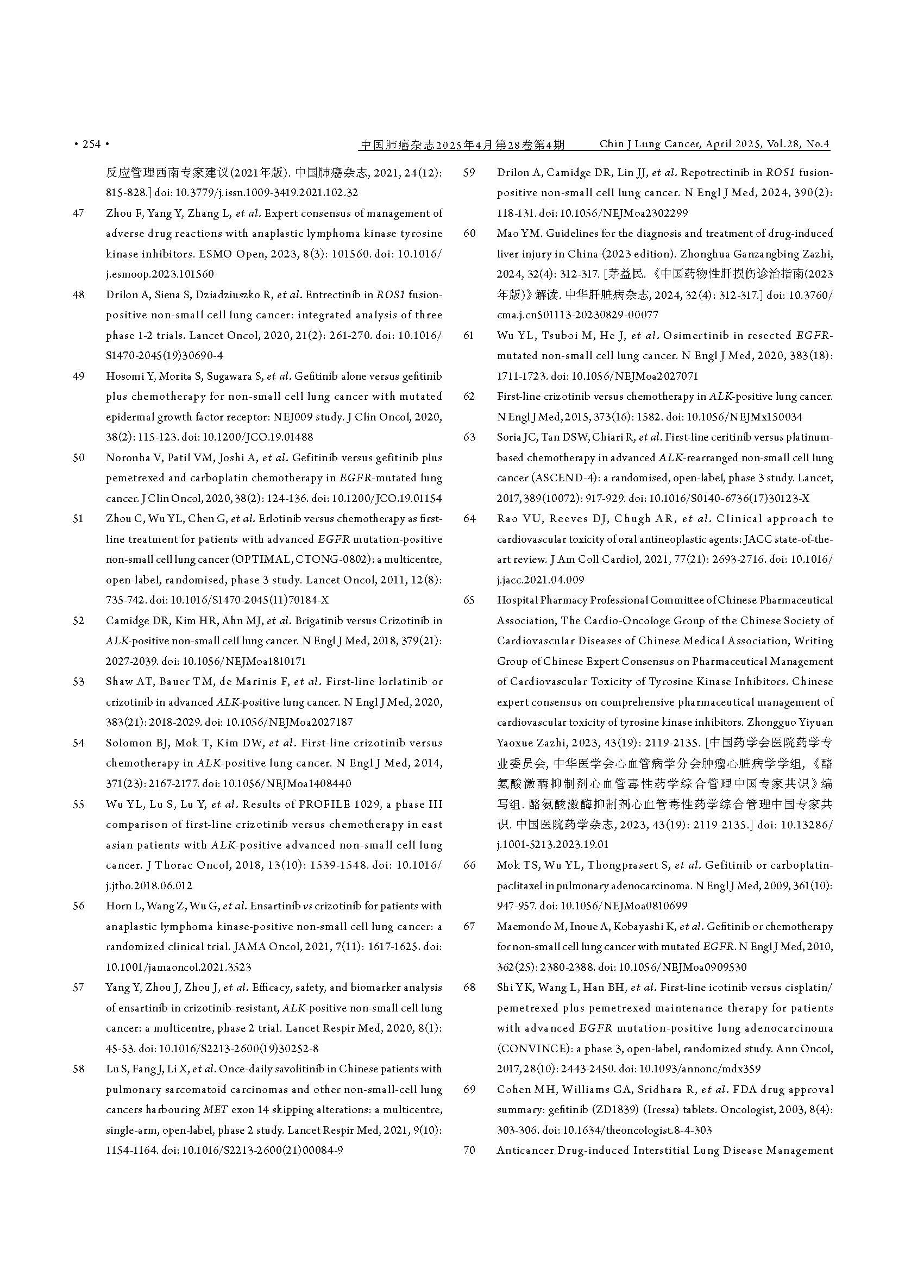 引用本文:赵丽岩, 唐可京, 《肺癌小分子靶向药物临床合理用药专家共识》工作组, 等. 肺癌小分子靶向药物临床合理用药专家共识[J]. 中国肺癌杂志, 2025, 28(4): 245-255.