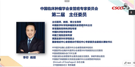 最后朱军教授代表学会领导致辞:对第一届CSCO食管癌专委会的工作给予了高度的肯定,希望新一届专委会团结协作,在李印教授带领下继续做好传承和创新,积极参加学会工作,为推动中国食管癌诊疗事业的发展做出更大贡献。