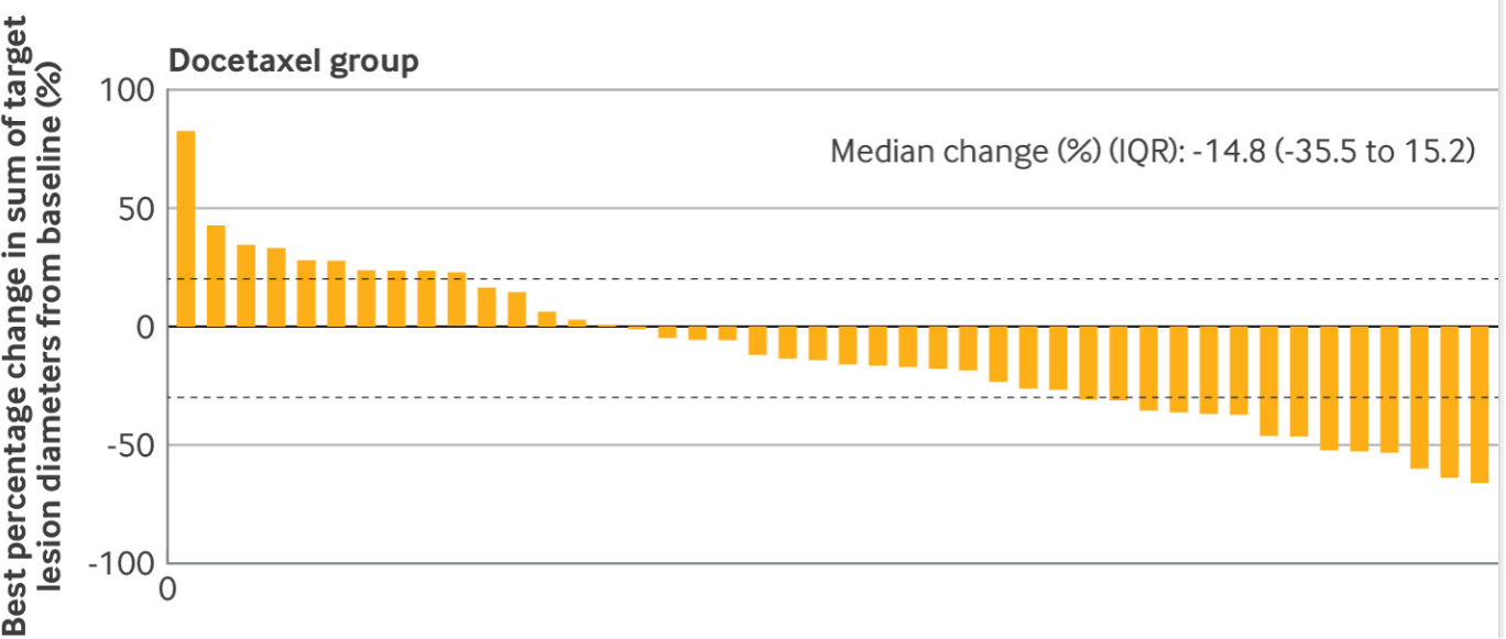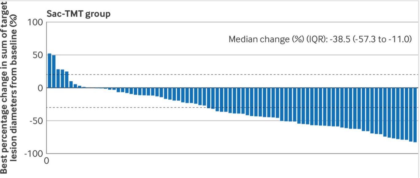 接受芦康沙妥珠单抗治疗的患者,客观缓解率(肿瘤明显缩小的比例)为45%,接受多西他赛治疗的患者为16%。