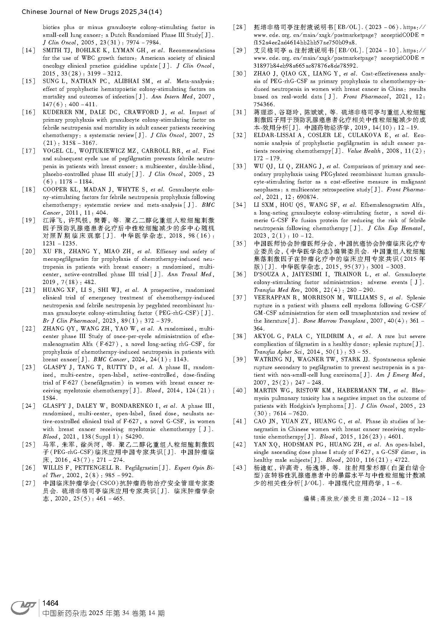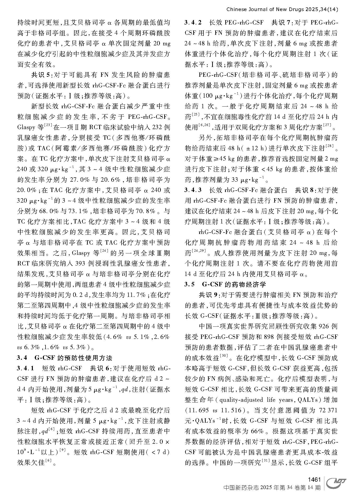 引用本文:刘波, 张宏艳. 肿瘤相关发热性中性粒细胞减少预防中国专家共识(2024年版)[J]. 中国新药杂志. 2025, 34(14): 1457-1464
