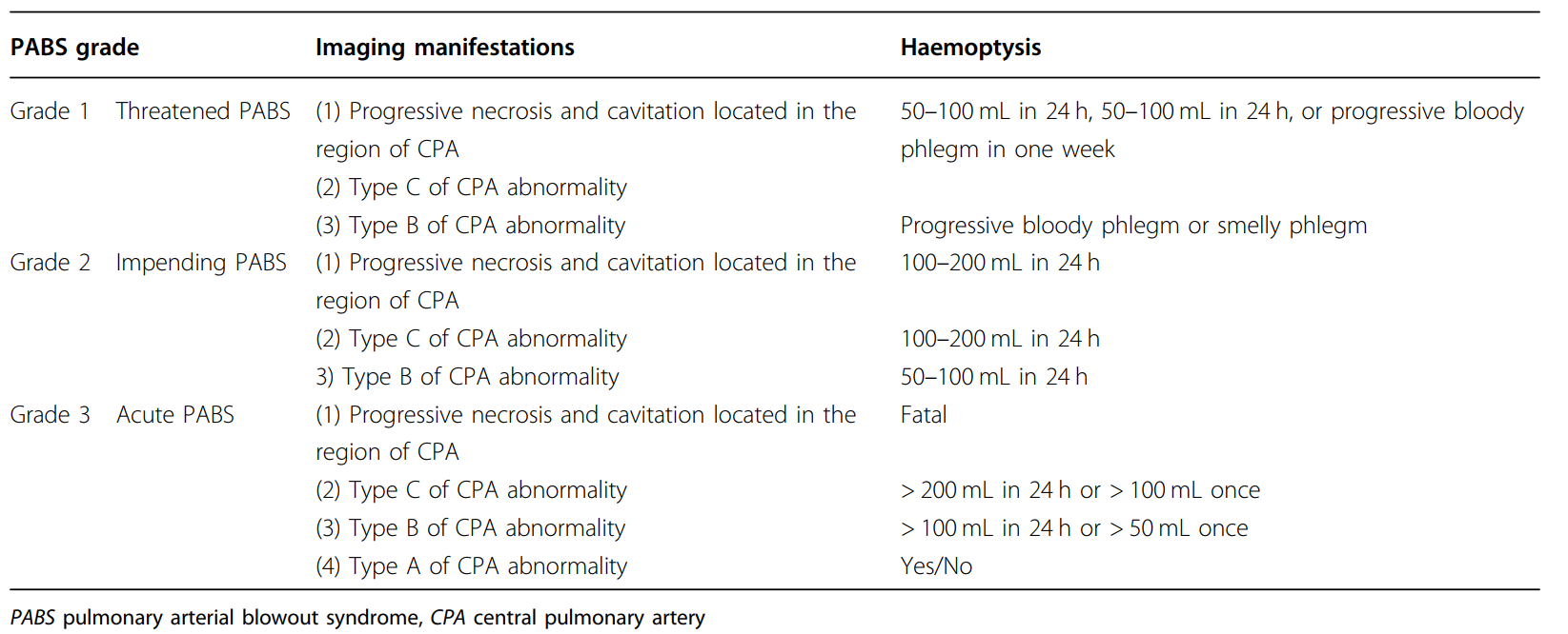 表1. PABS定义及三种分级