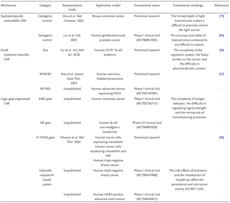 表1. 基于合成生物学改造CAR-T的从基础到临床的研究进展