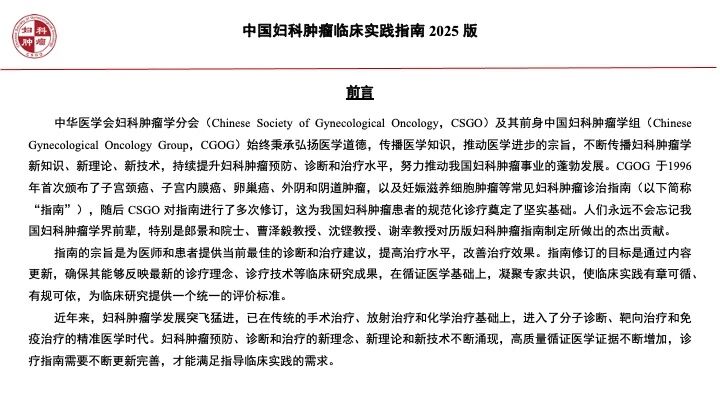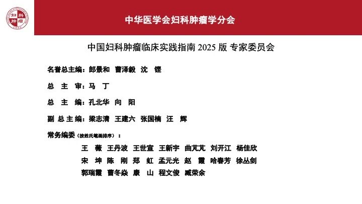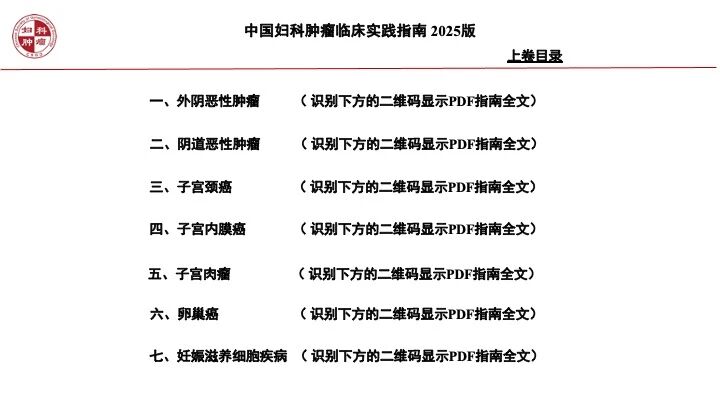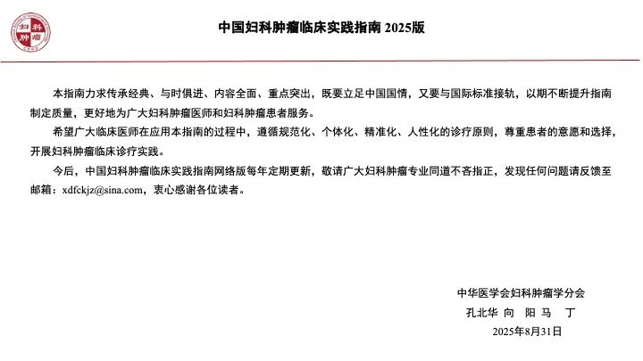 《中国妇科肿瘤临床实践指南》2025版正式发布(中华医学会妇科肿瘤学分会)